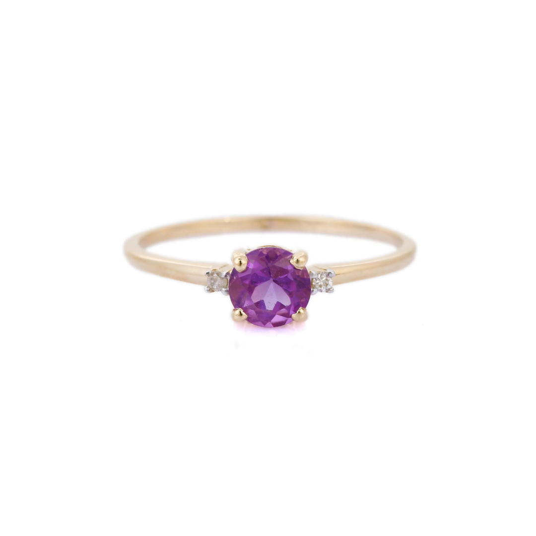 14K Solid Gold Amethyst Diamond Ring