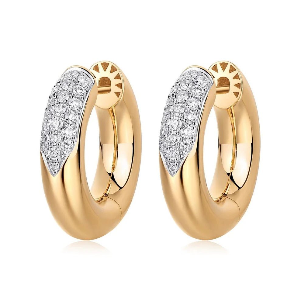 14K Yellow Gold Hoop Earrings With Blazing Diamond