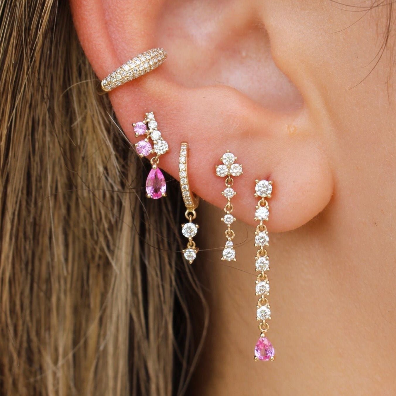 14K Gold Pink Sapphire Pear Lab Grown Diamond Bar Earring