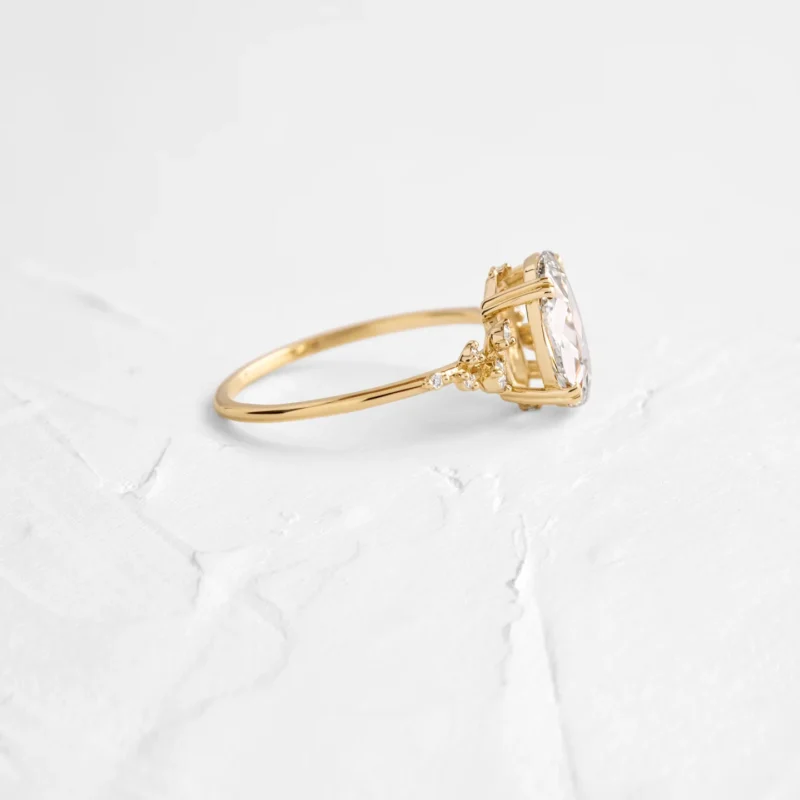 A 2.2ct lab-grown diamond engagement ring with 8 delicate side stones, crafted in 14K solid gold for timeless brilliance.