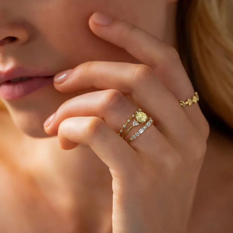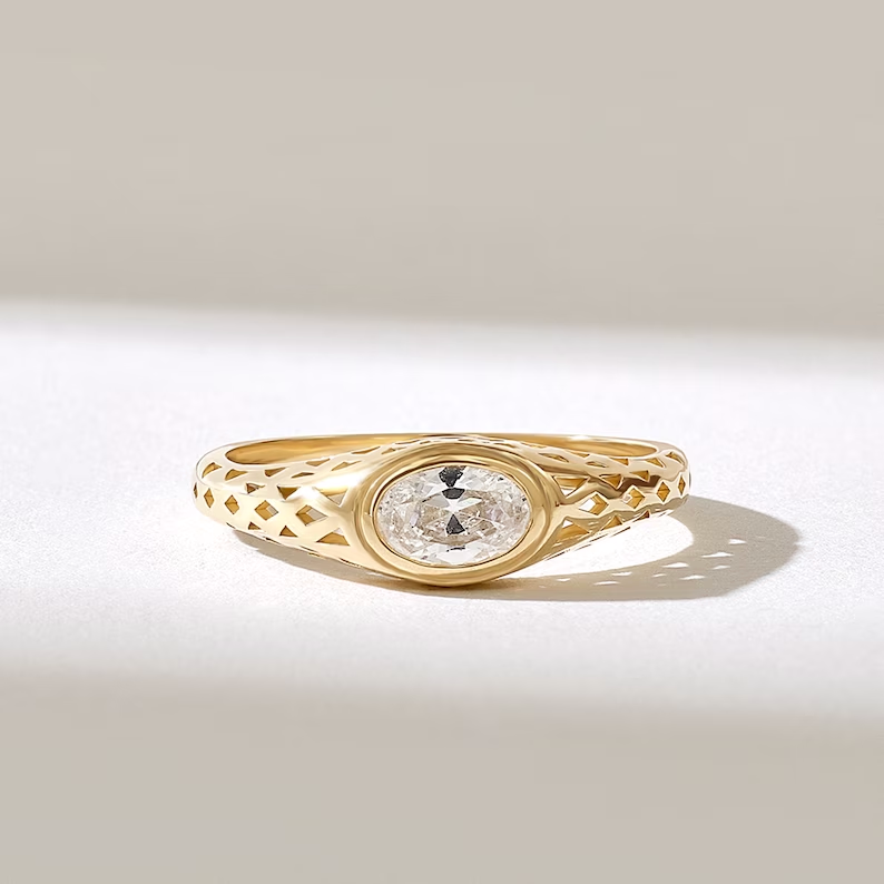 All our rings are made from solid 14K and 18K gold, never gold-plated or filled. Our diamonds and Moissanite stones are ethically sourced and certified by GIA, IGI, or GRS, depending on your choice.