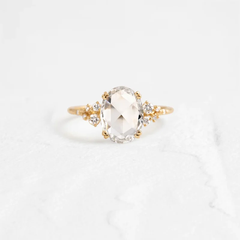 14k Gold 1.51ct. Rose Cut Oval Lab-Grown Diamond Engagement Ring