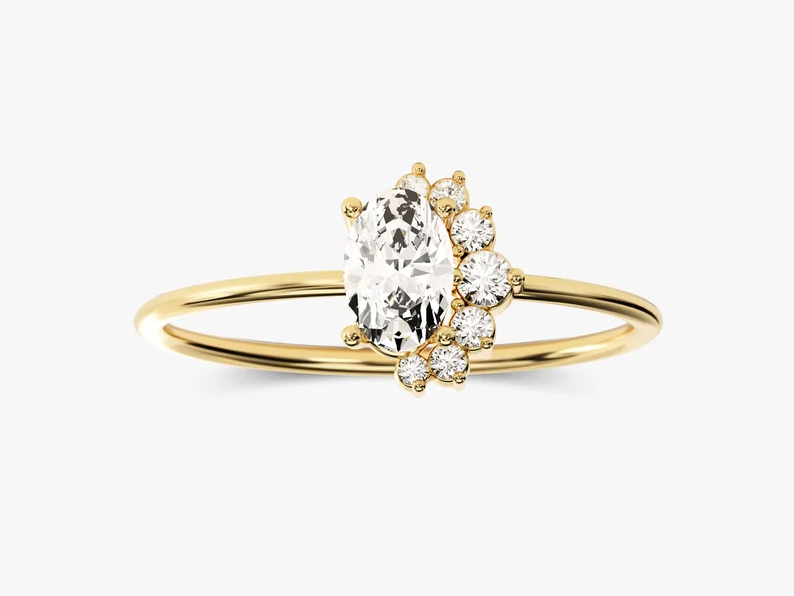 14K Gold Lady’s Slipper Ring, Oval Cut Diamond Moissanite Engagement Ring