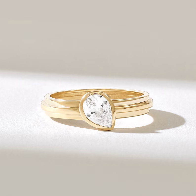 "Elegant 14K Gold Moissanite Diamond Pear Engagement Ring – a beautiful pear-shaped Moissanite diamond set in a sleek solitaire bezel setting for a sophisticated look."