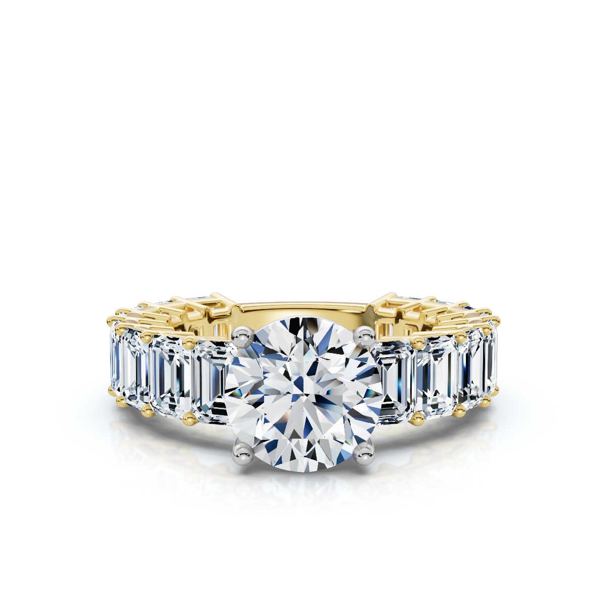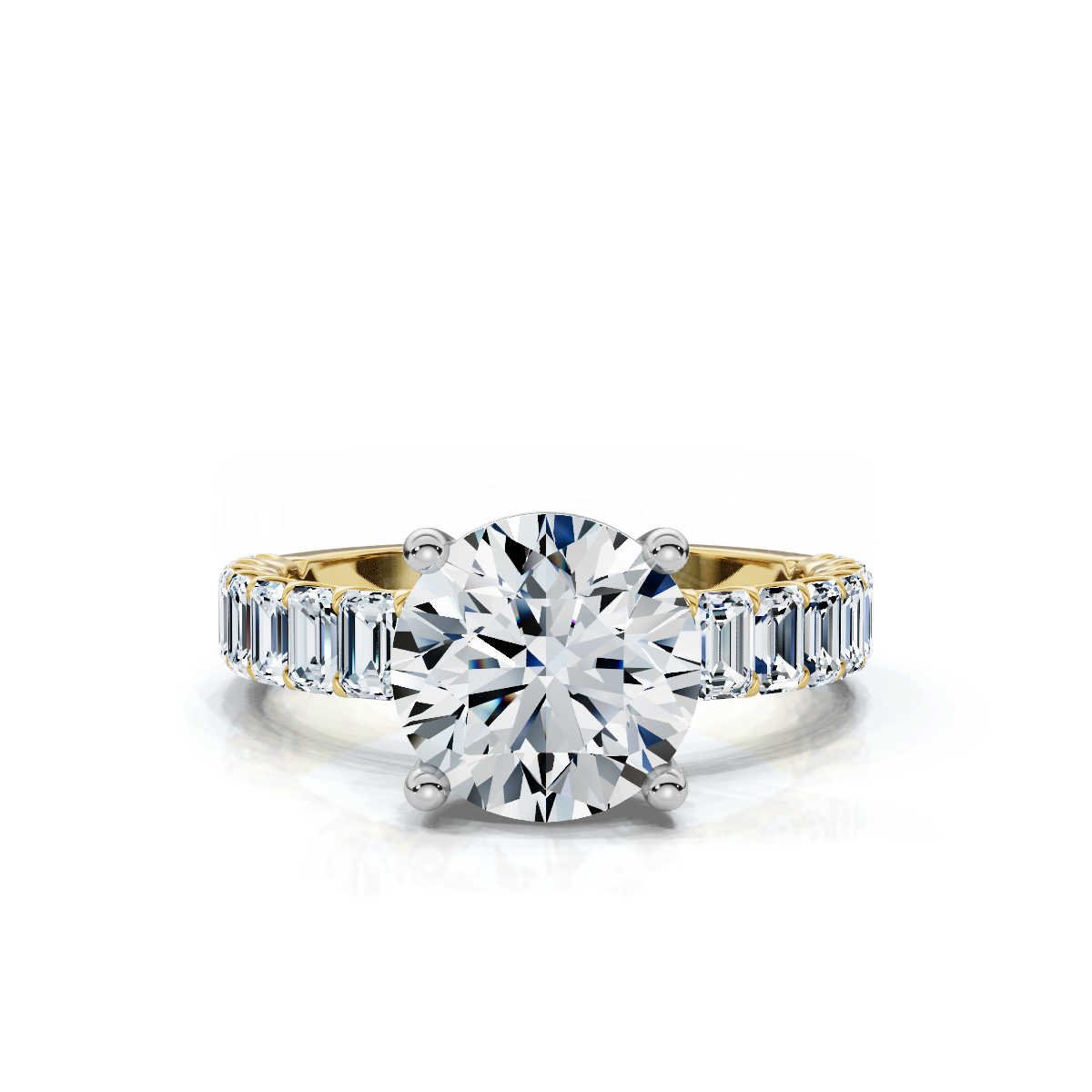 14k Gold Buguette & Round Shape Lab Grown Diamond Engagement Ring