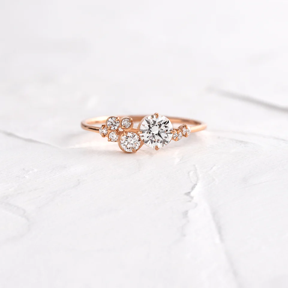 Minimalist 0.30ctw natural diamond cluster engagement ring in 14k solid gold. Customizable in white, rose, or yellow gold. BIS Hallmarked & GIA certified.