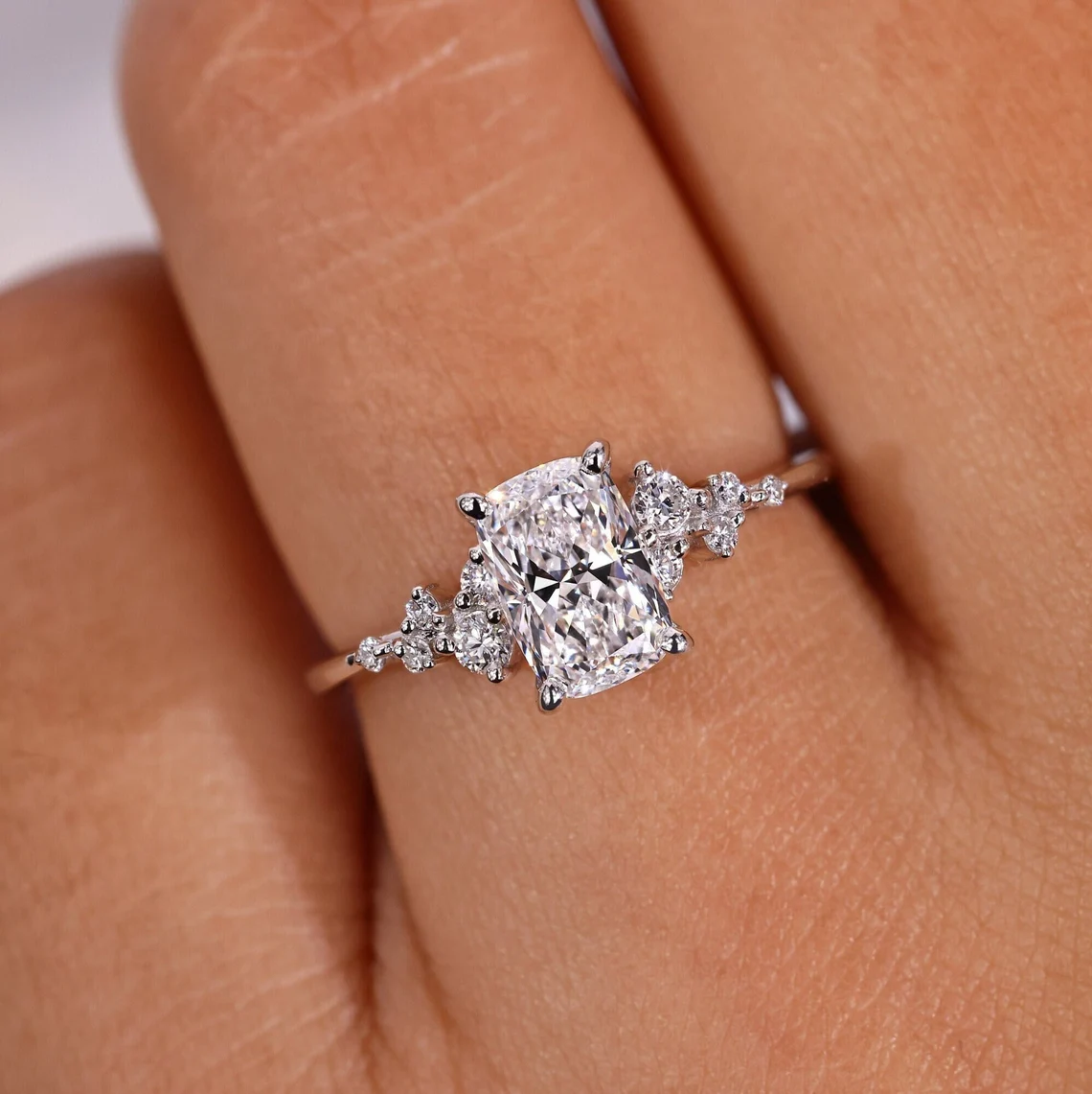 14k Gold 1 CT Elongated Cushion Cut Moissanite Diamond Snowdrift Engagement Ring