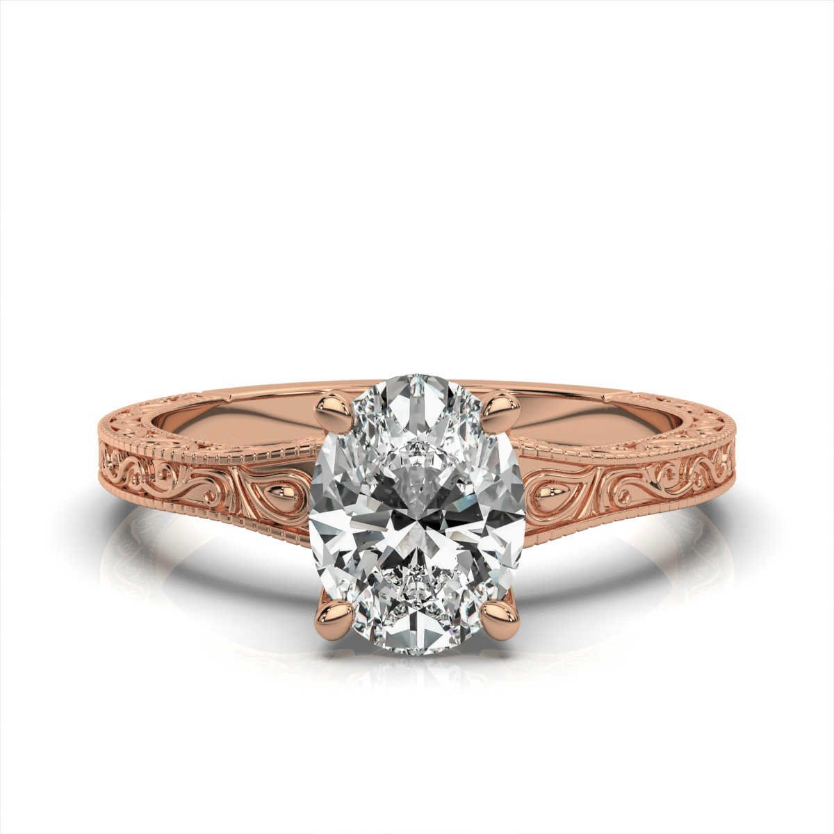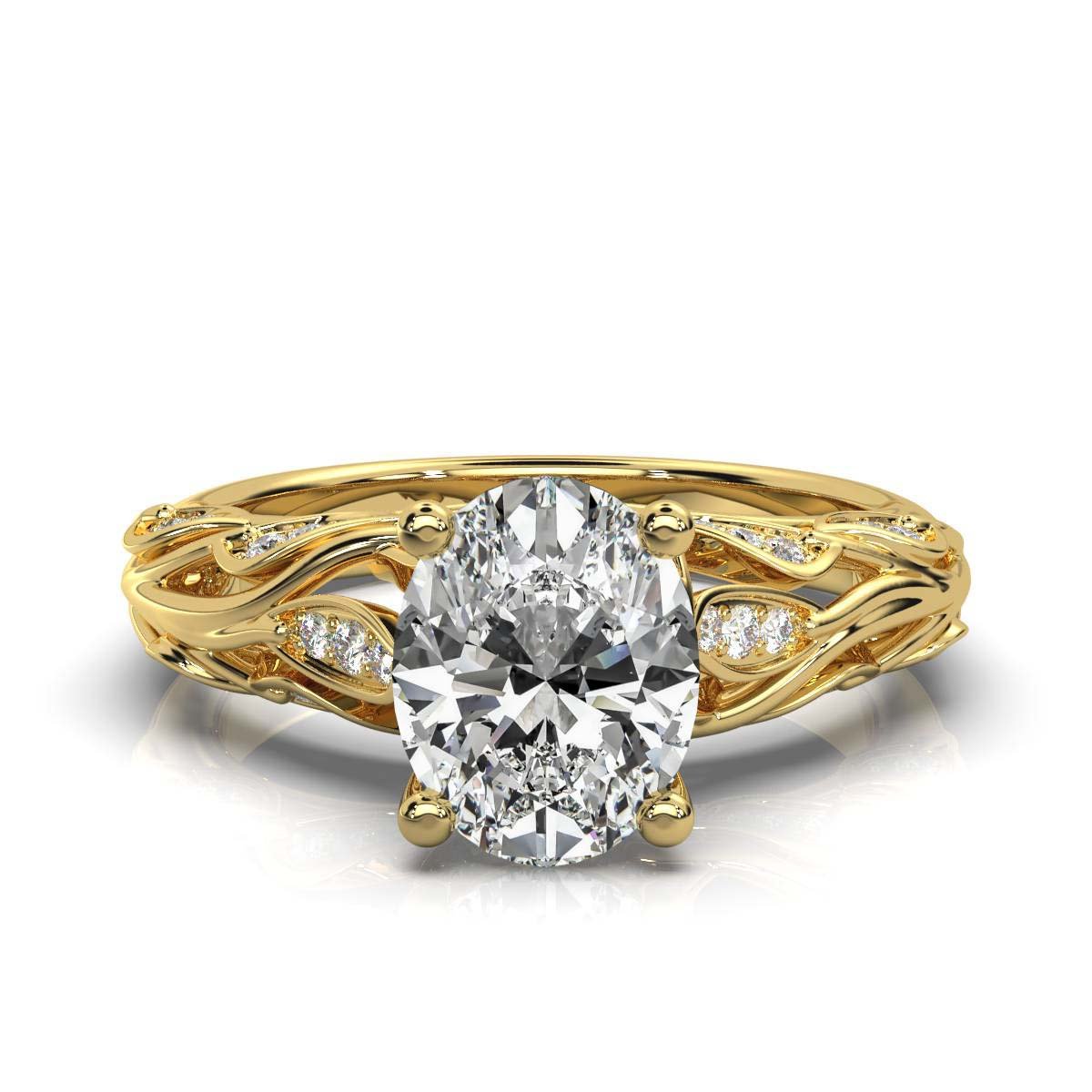 A classic 18k gold solitaire engagement ring, featuring a 2ct oval lab-grown diamond (F color, VS2 clarity, Super Cut) in a prong setting. IGI & BIS Hallmarked, available in White, Rose, and Yellow Gold.