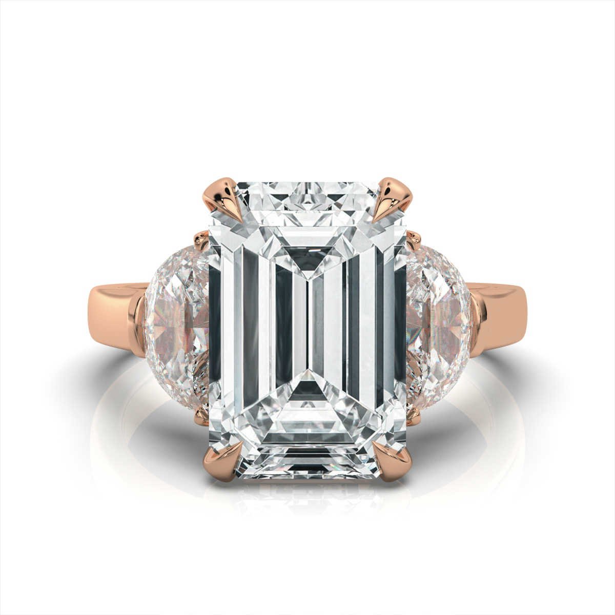 18K Solid Gold Three Stone Half-Moon Lab Grown Diamond Engagement Ring