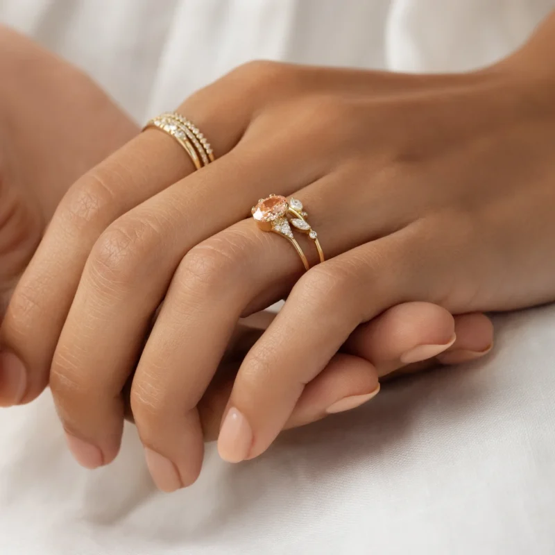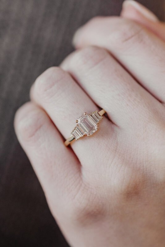 All our rings are made from solid 14K and 18K gold, never gold-plated or filled. Our diamonds and Moissanite stones are ethically sourced and certified by GIA, IGI, or GRS, depending on your choice.