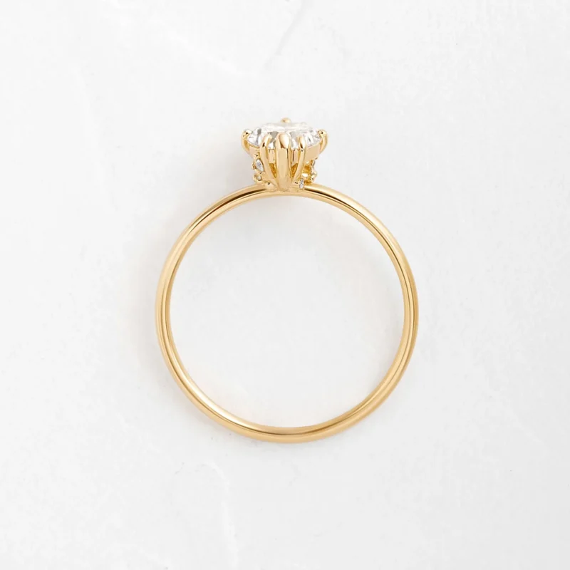 This 14K solid gold engagement ring features a 1ct heart-shaped moissanite diamond—blending radiant brilliance with a sweet, romantic silhouette.