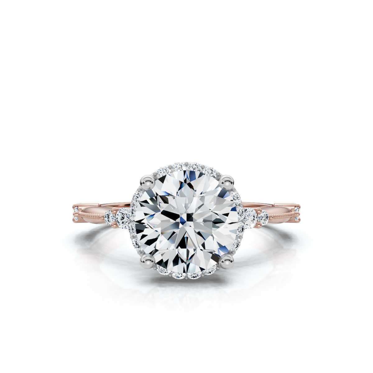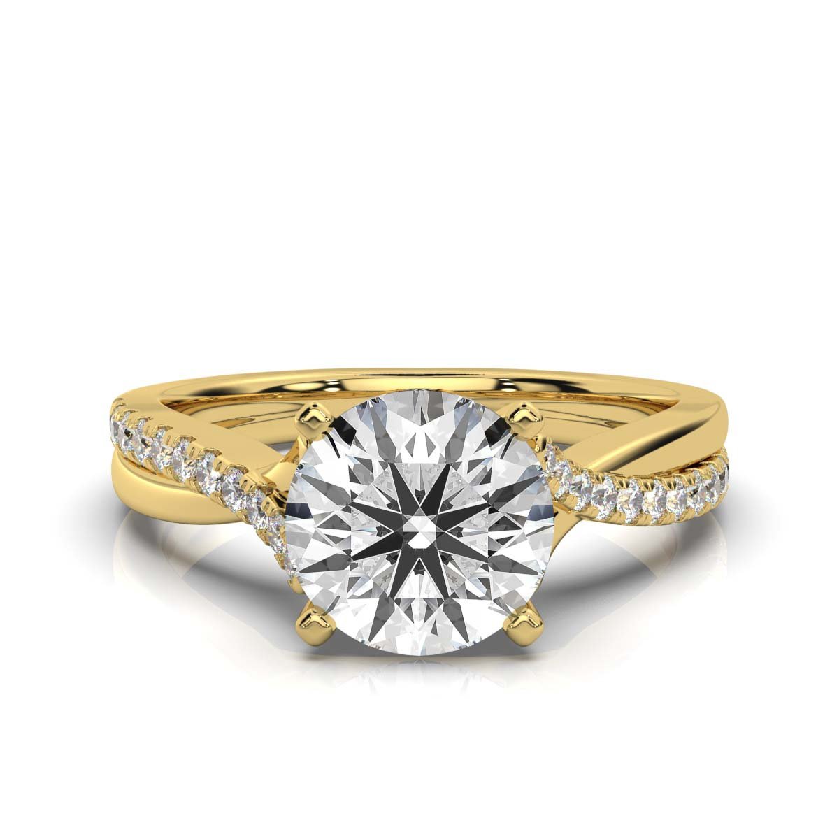 A 2.2ct lab-grown diamond engagement ring in 14K solid gold, featuring a 2ct round-cut diamond and 22 side stones (0.2ct total). Available in white, rose, and yellow gold. BIS & IGI Certified.