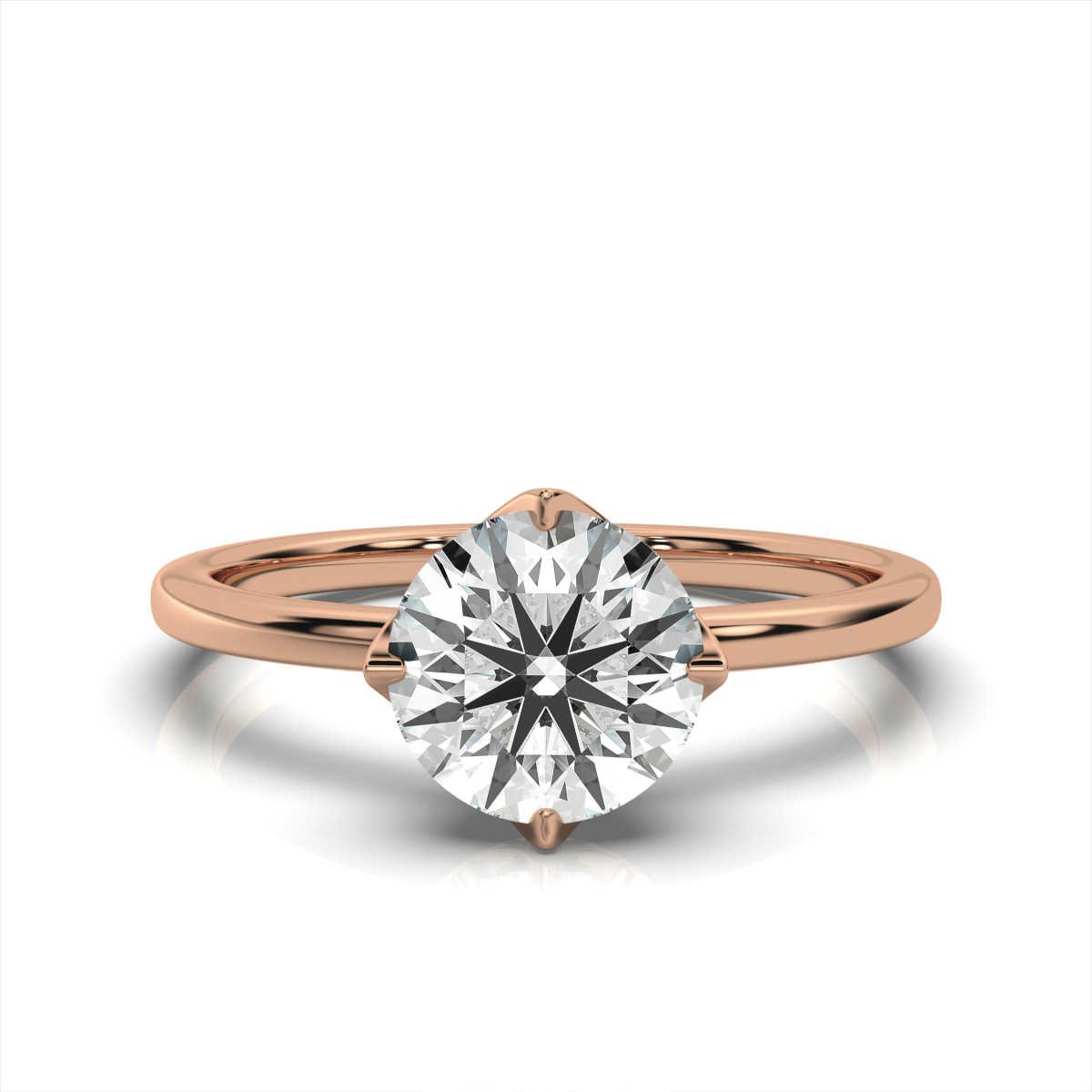 14K Solid Gold 1 Carat Brilliant Round Moissanite 6 – Prong Engagement Ring
