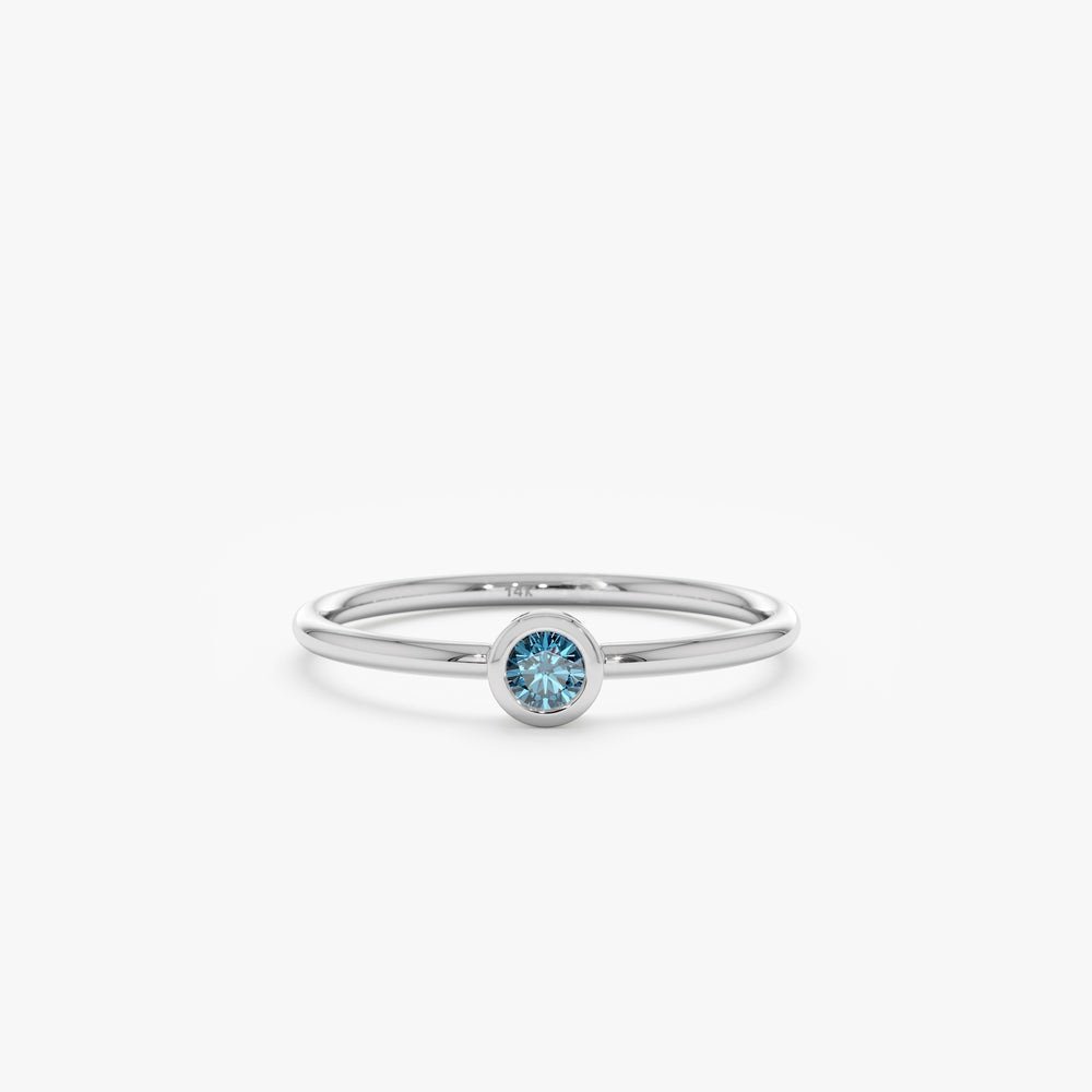 14K Solid Gold Natural Blue Diamond Bezel Ring
