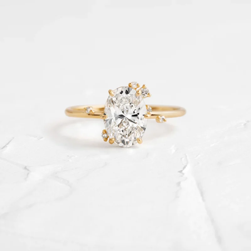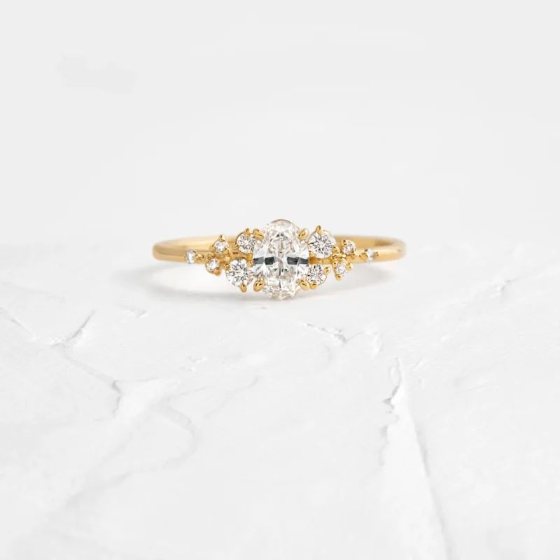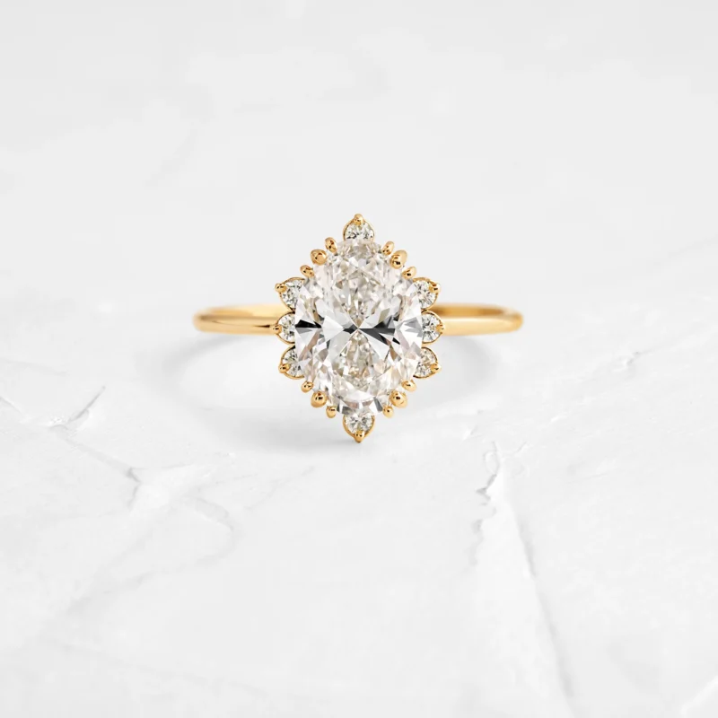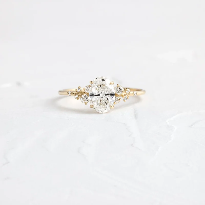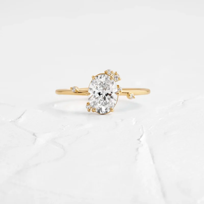 14K Solid Gold Oval & Round Lab Grown Diamond Engagement Ring