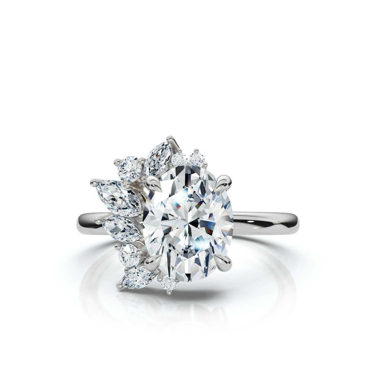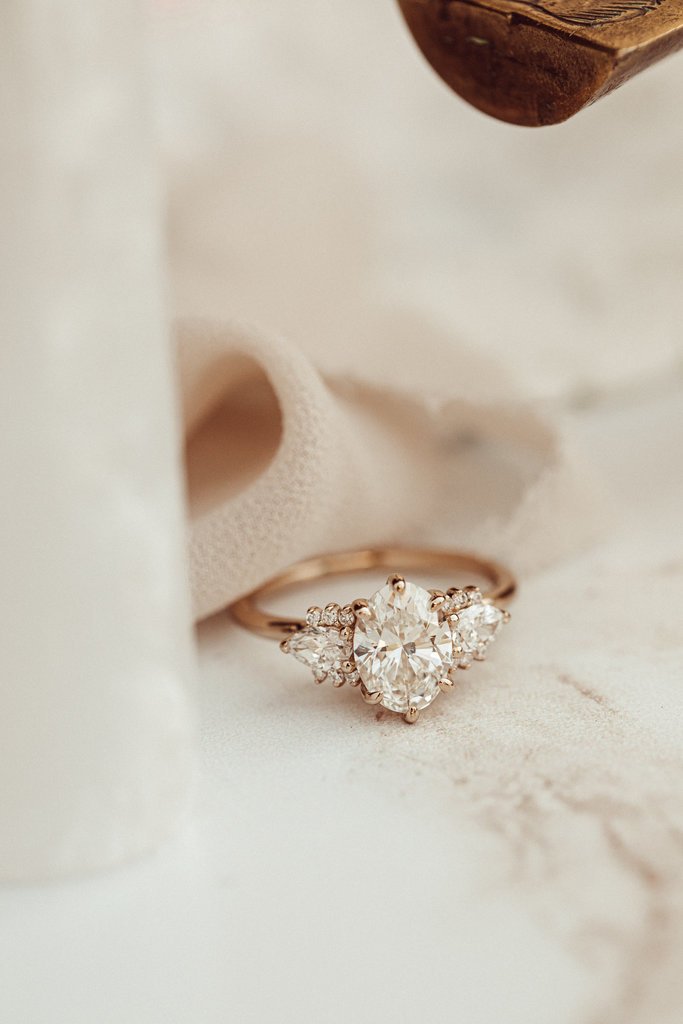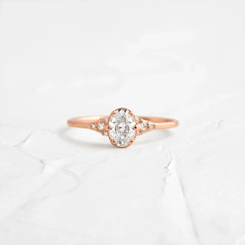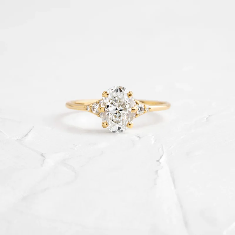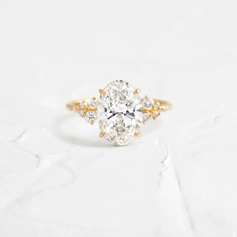 14K Solid Gold Oval & Round Lab Grown Diamond Engagement Ring