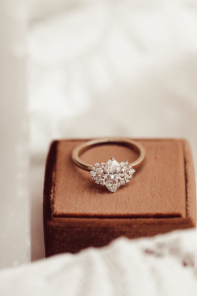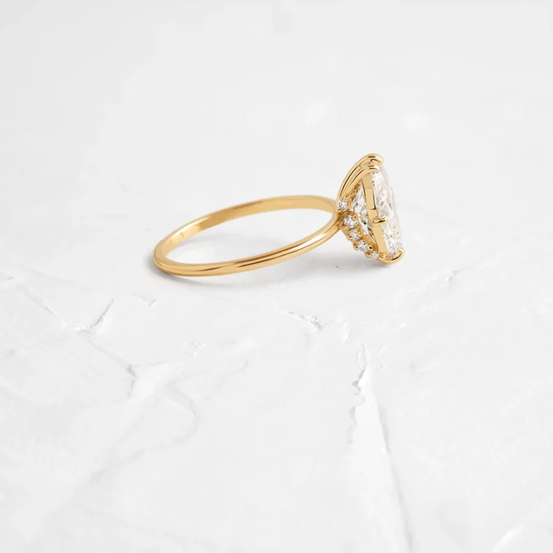 14K Solid Gold Marquise & Round Lab Grown Diamond Ring