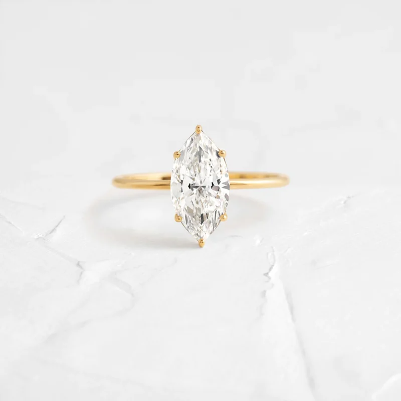 14k Solid Gold Marquise Cut Lab-Grown Diamond Engagement Ring