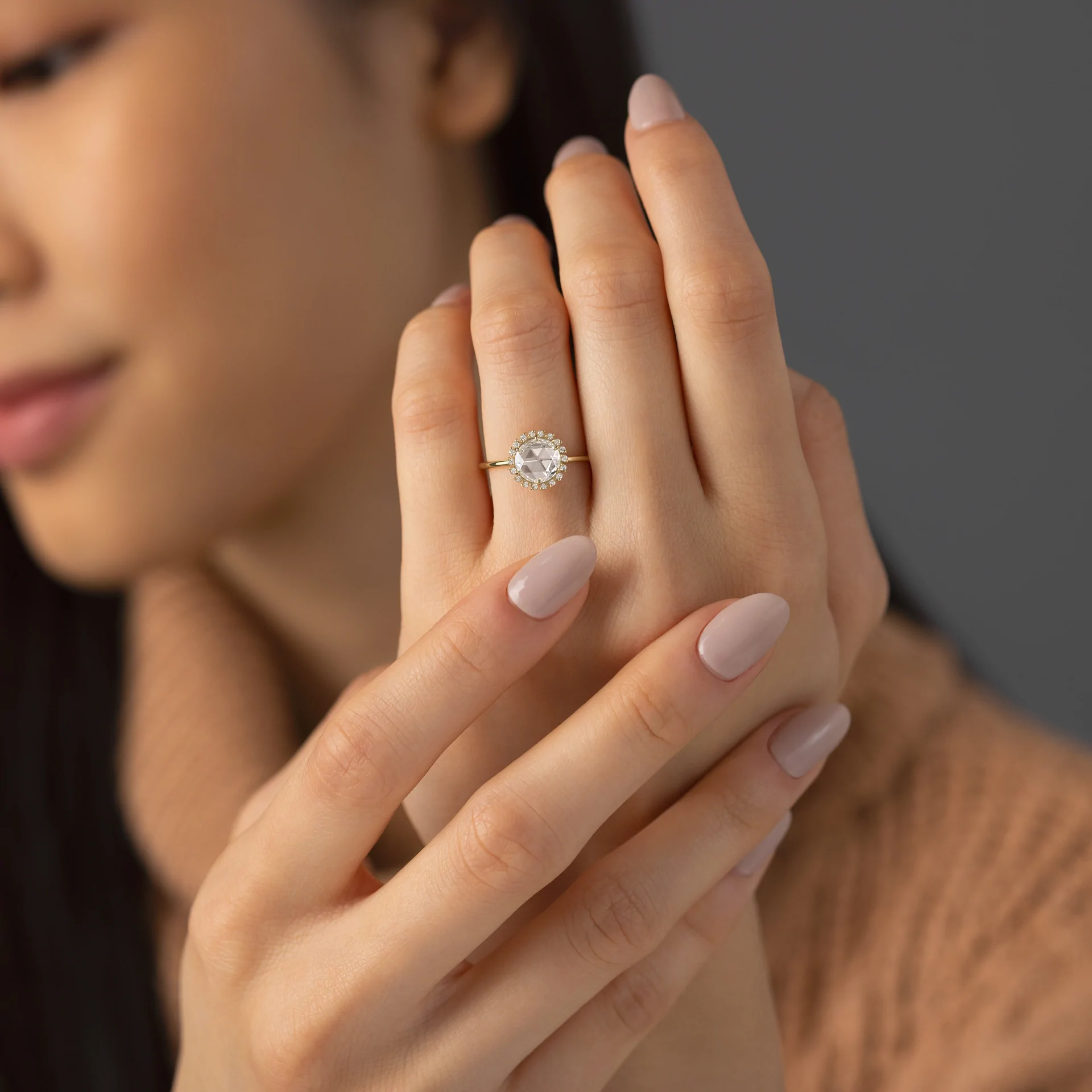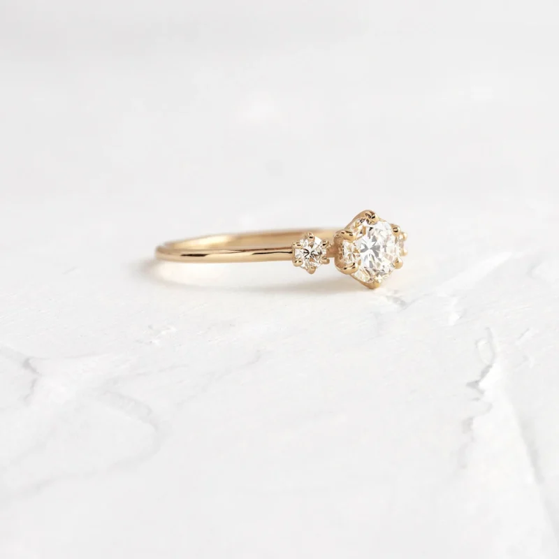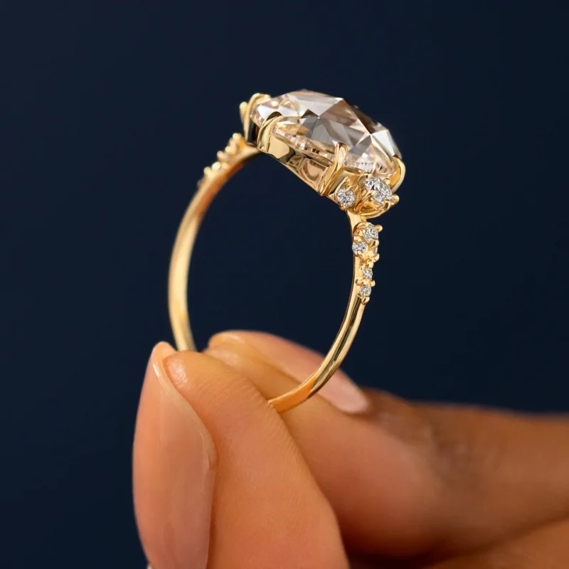 All our rings are made from solid 14K and 18K gold, never gold-plated or filled. Our diamonds and Moissanite stones are ethically sourced and certified by GIA, IGI, or GRS, depending on your choice.