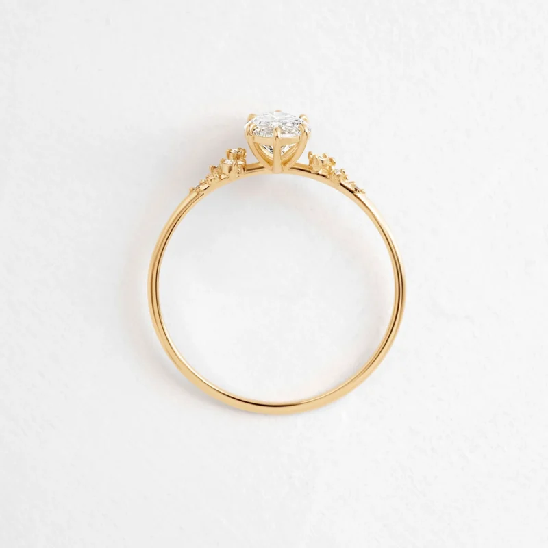 14K Solid Gold Marquise Moissanite Diamond Engagement Ring | 0.5ctw Solitaire Ring with Round Moissanite Diamonds