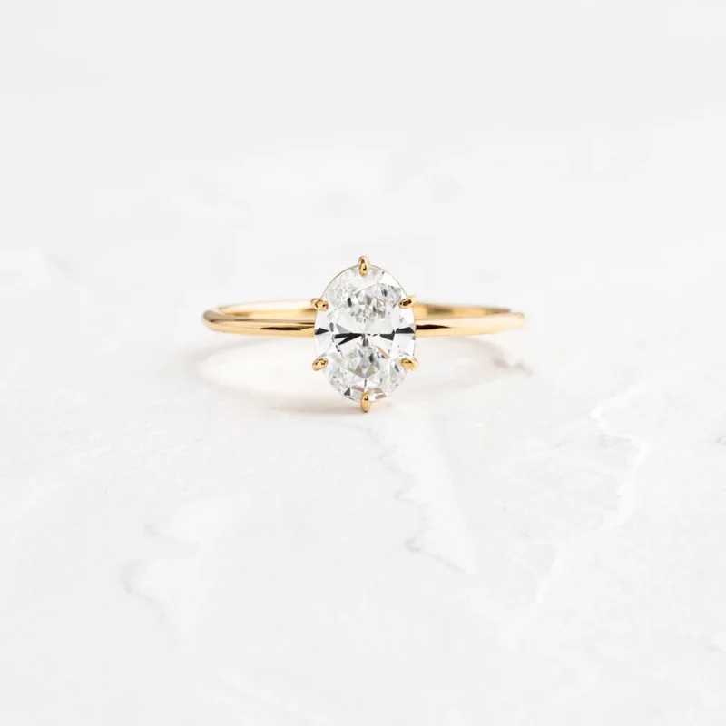 14k Solid Gold Moissanite Diamond Oval 6-Prong East West Solitaire Ring