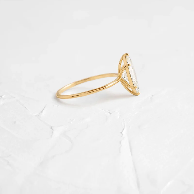 14k Solid Gold Marquise 4-Prong Solitaire Moissanite Diamond Ring