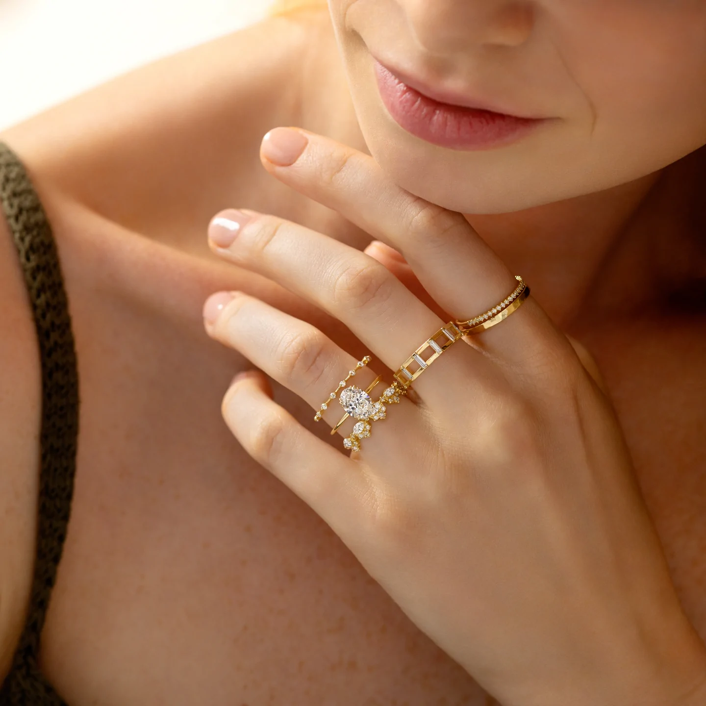 We offer natural diamond, lab-grown diamond, and Moissanite engagement rings, all in solid gold.