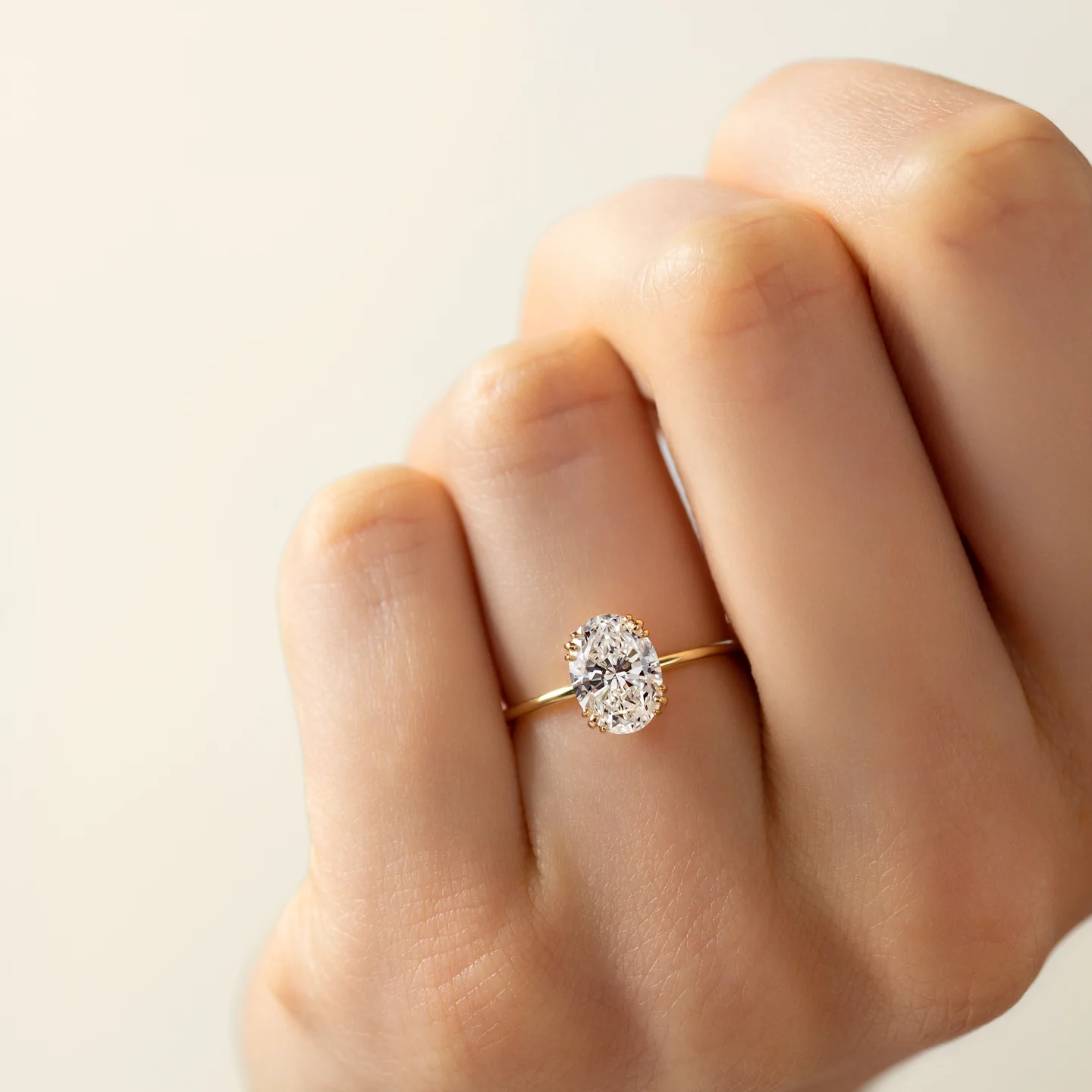 14K Solid Gold Oval Cut Lab-Created Diamond Solitaire Engagement Rings