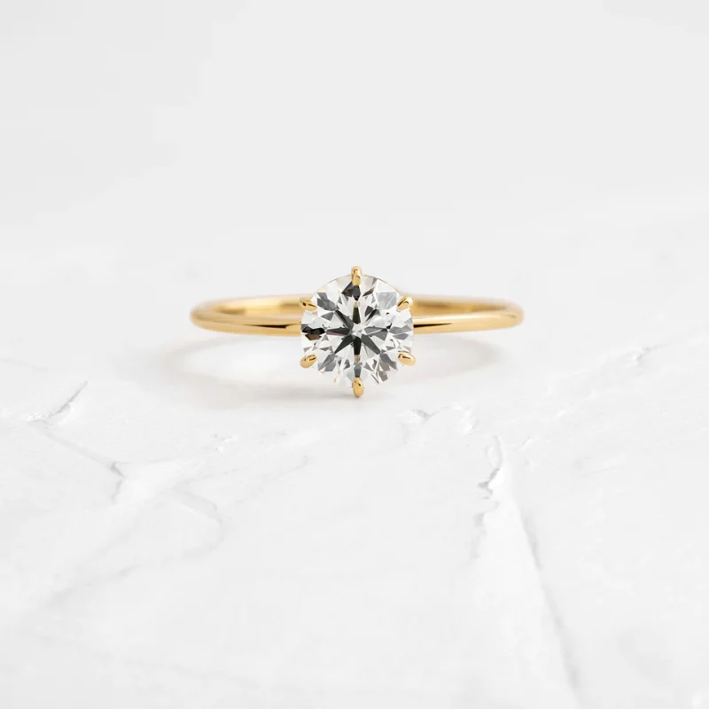 14k Solid Gold Six-Prong Round Solitaire Lab Grown Diamond Ring for Women