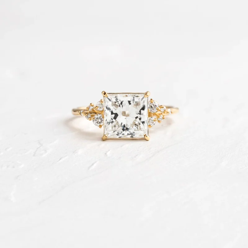 14k Solid Gold Princess Cut Moissanite Diamond Ring