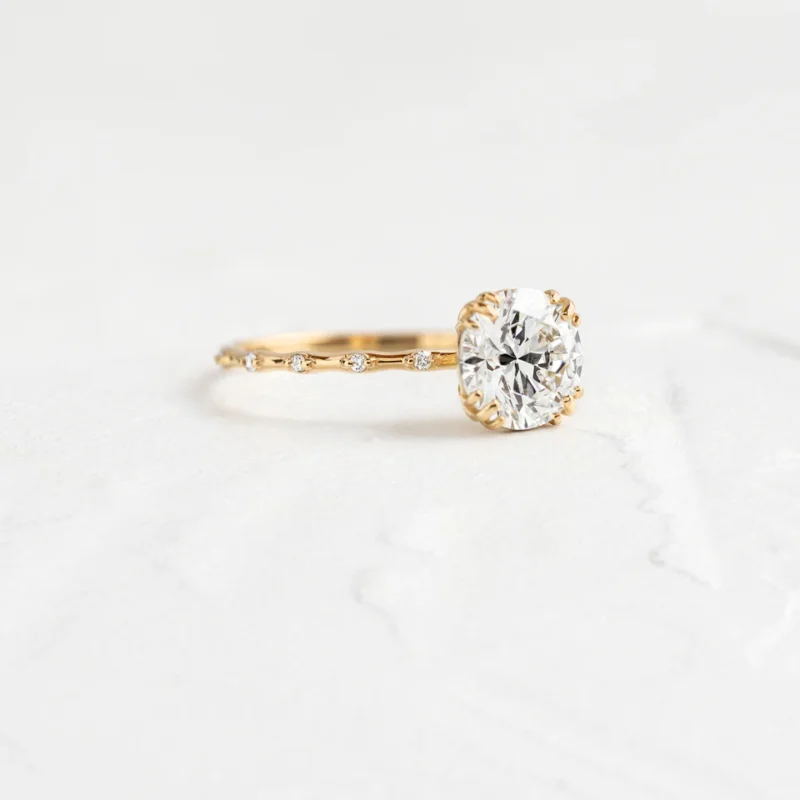 14K Solid Gold Pave Setting Lab Grown Diamond Engagement Ring