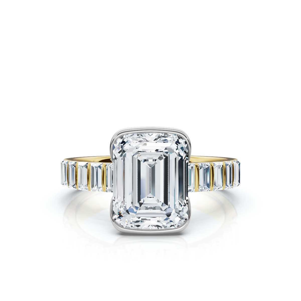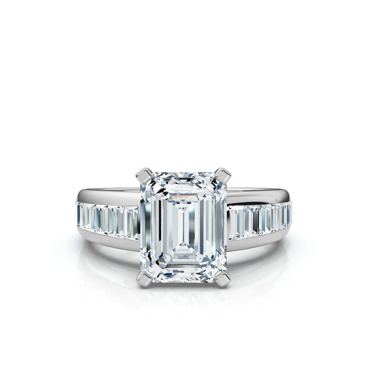 14K Solid Gold Round and Baguette Moissanite Diamond Engagement Ring