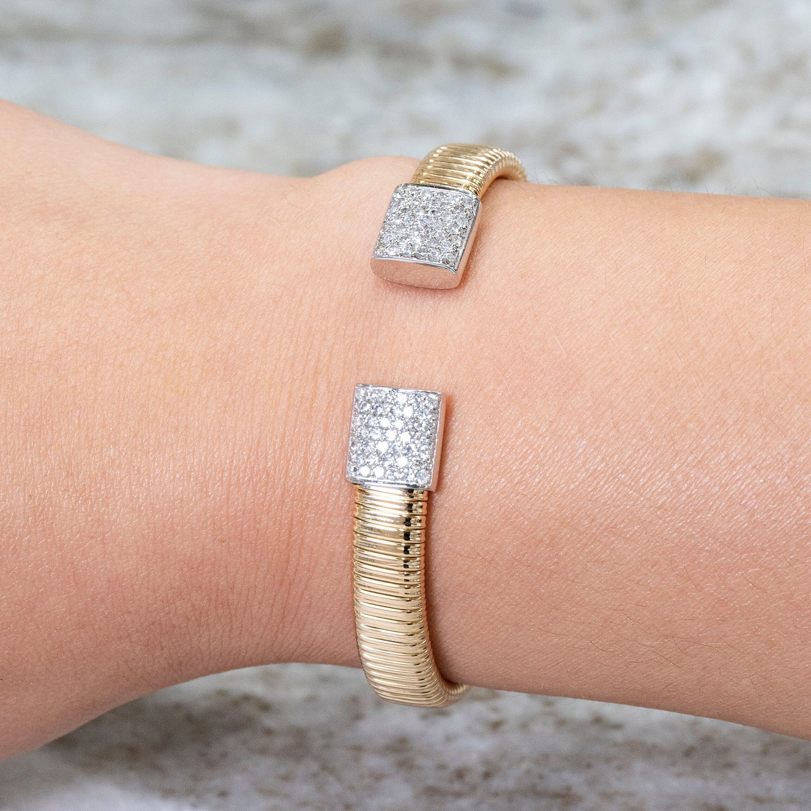 18k Gold Flexible Pave Moissanite Diamond Bangle