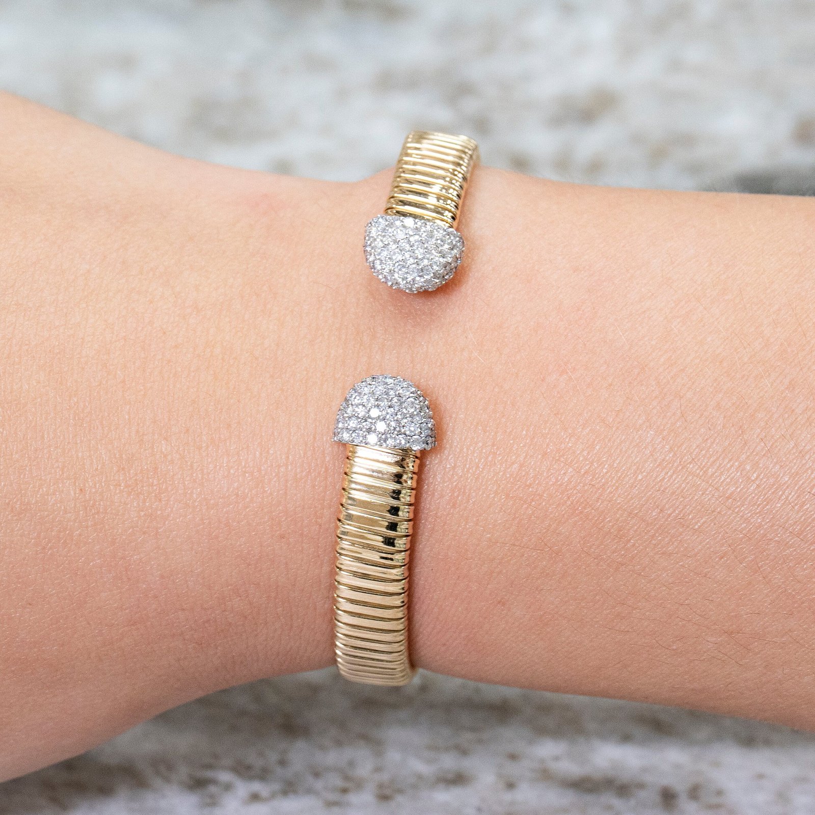 18k Gold Flexible Pave Moissanite Diamond Round Bangle