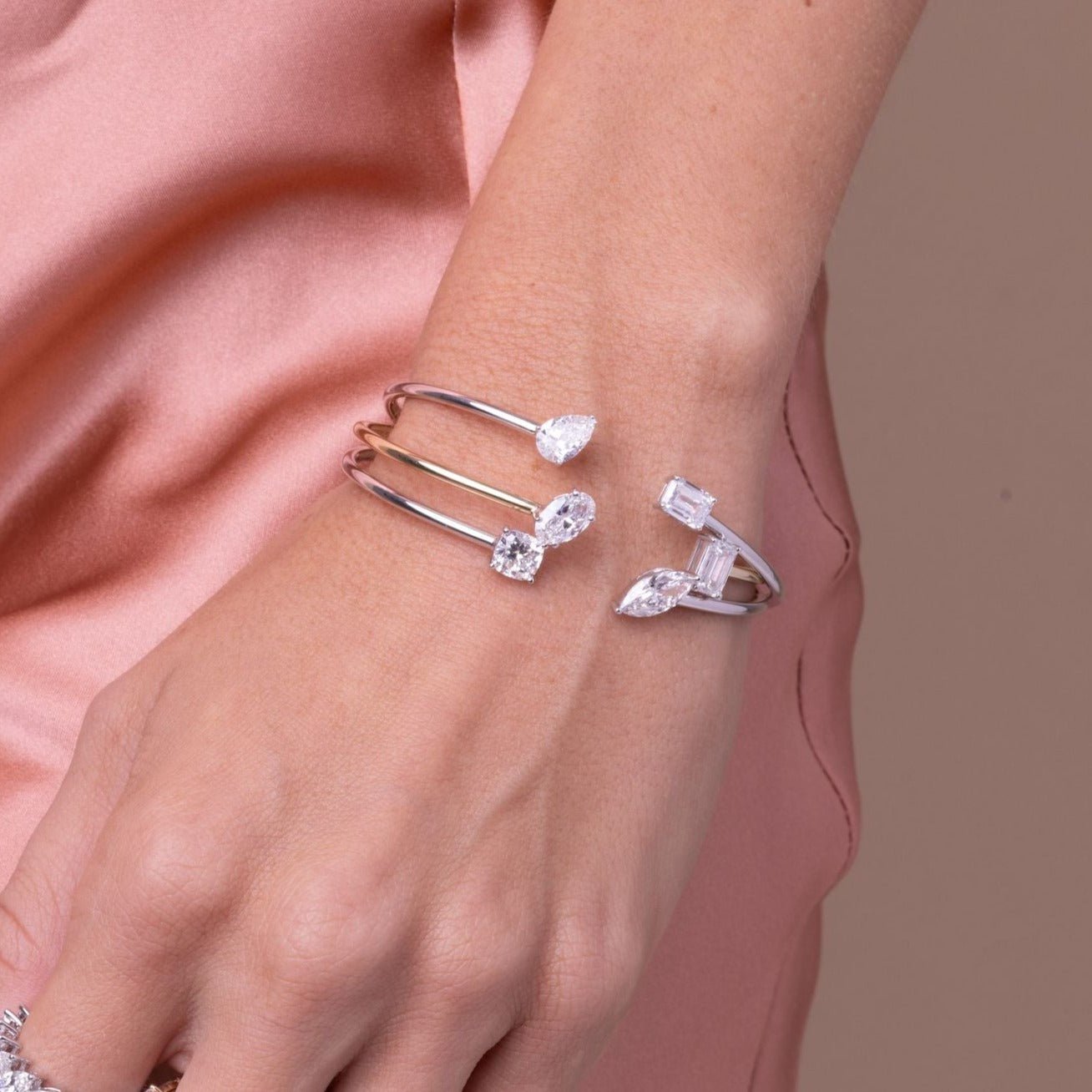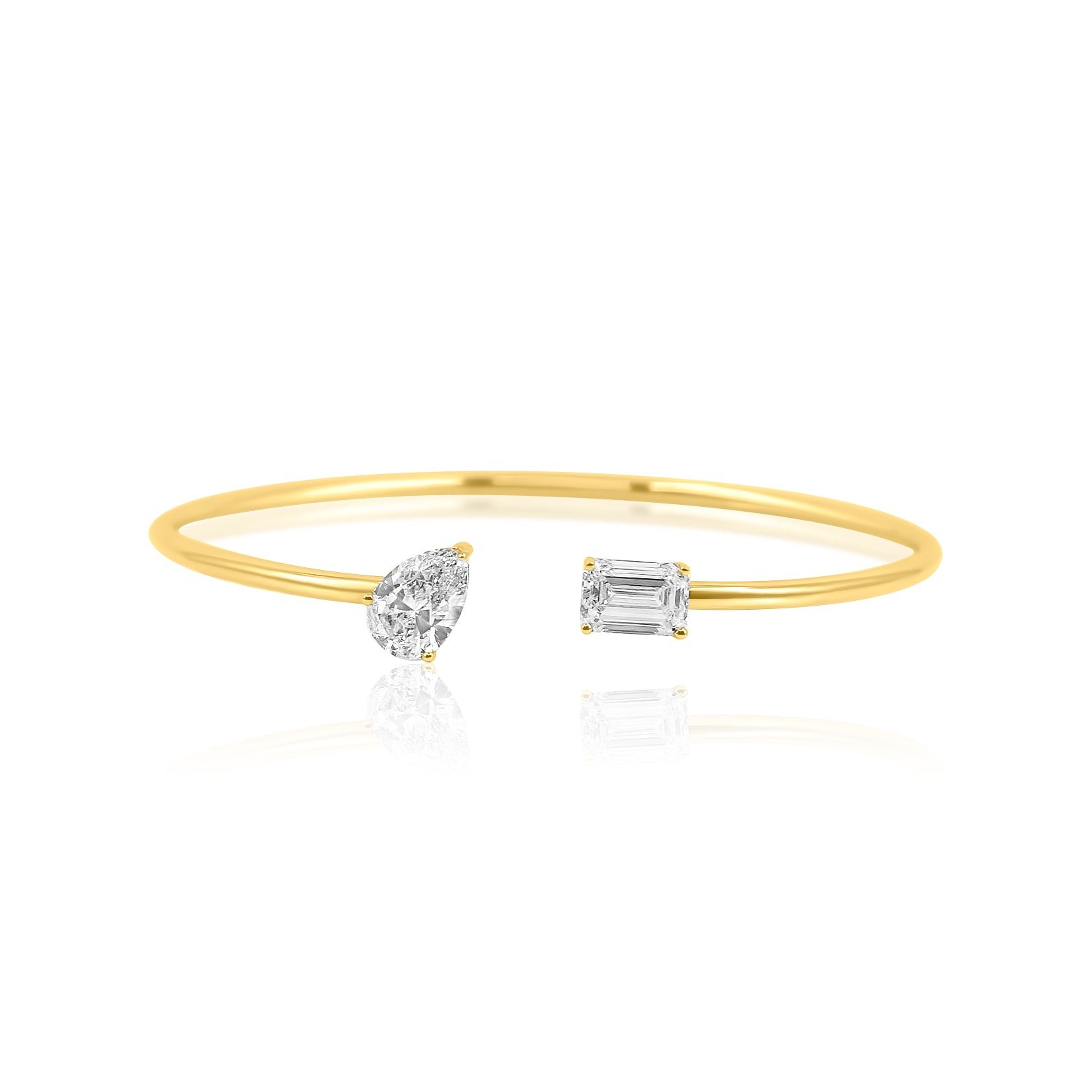 18k Gold Moissanite Diamond Pear Emerald Bangle