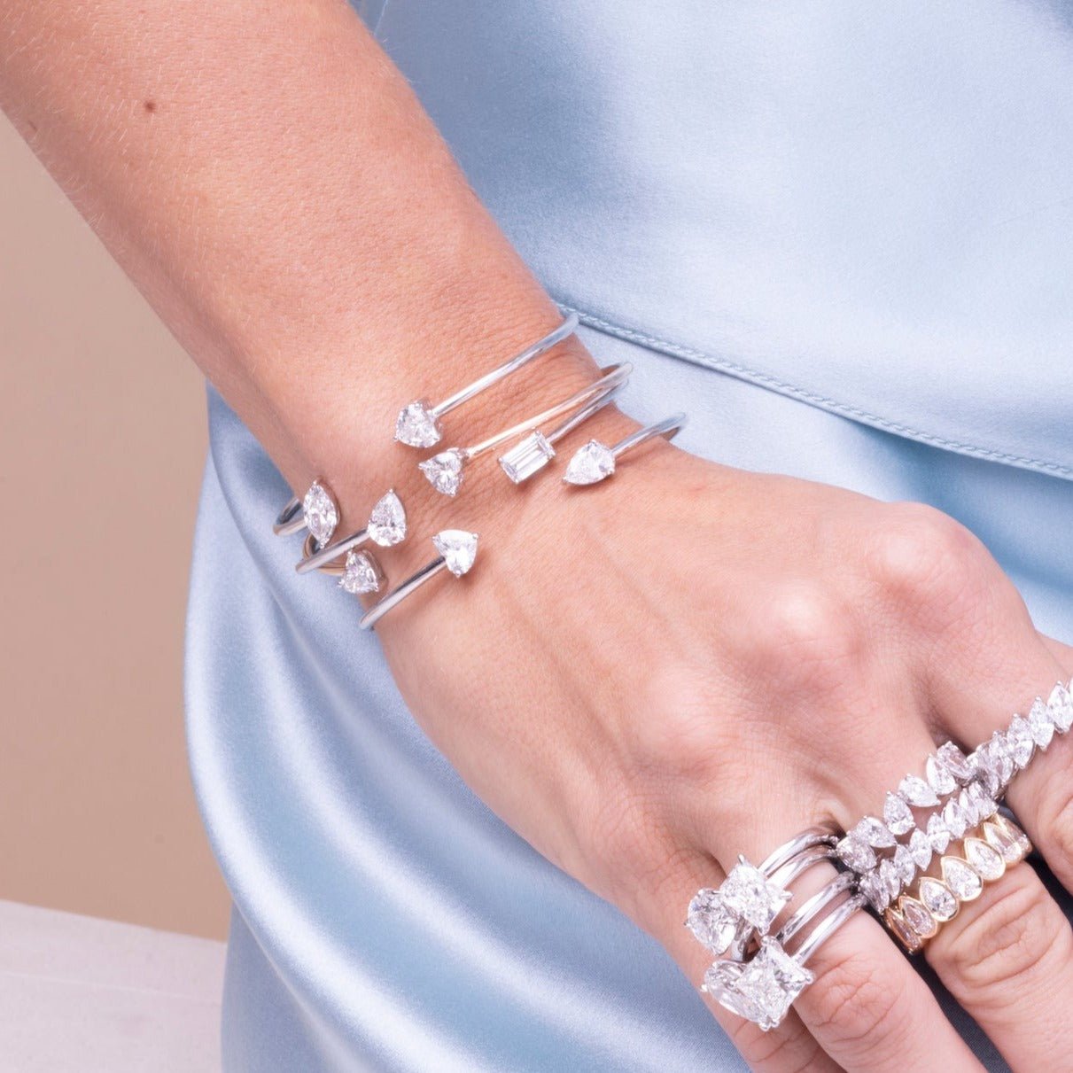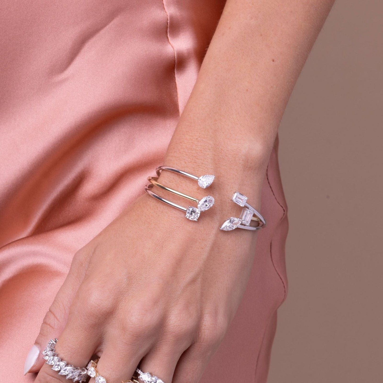 18k Gold Moissanite Diamond Double Pear Bangle