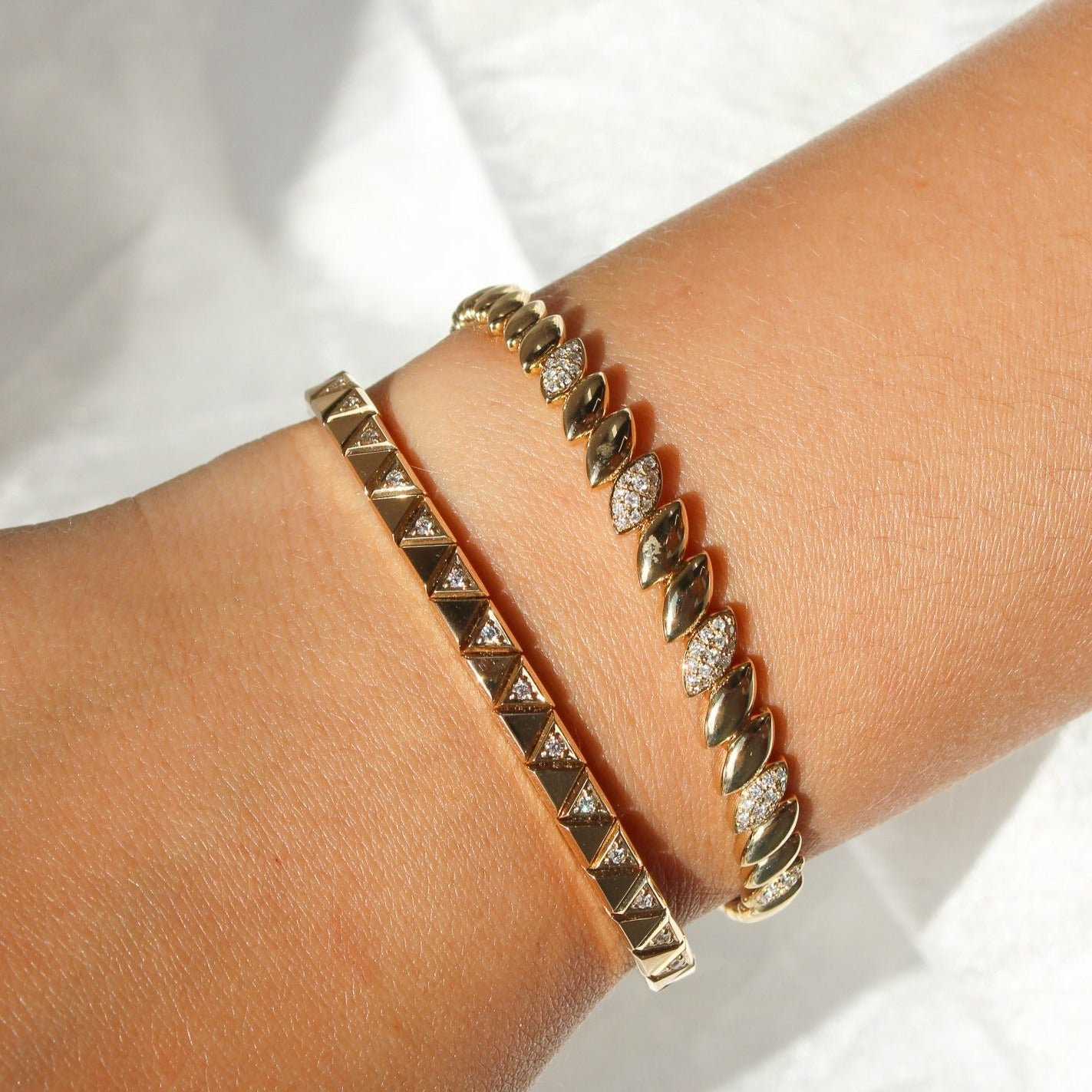 14k Gold Pyramid Diamond Stud Bangle
