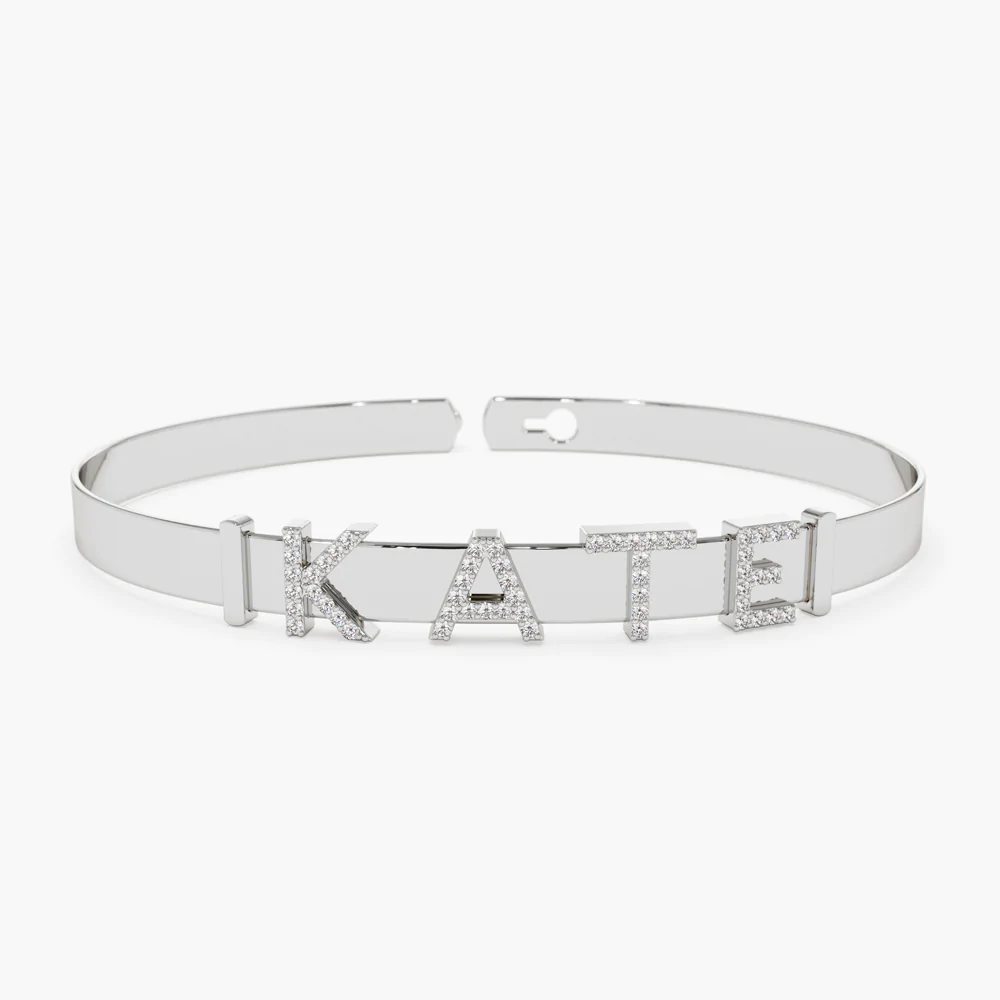 18k Solid Gold 5MM Sliding Moissanite Diamond Initials Bangle