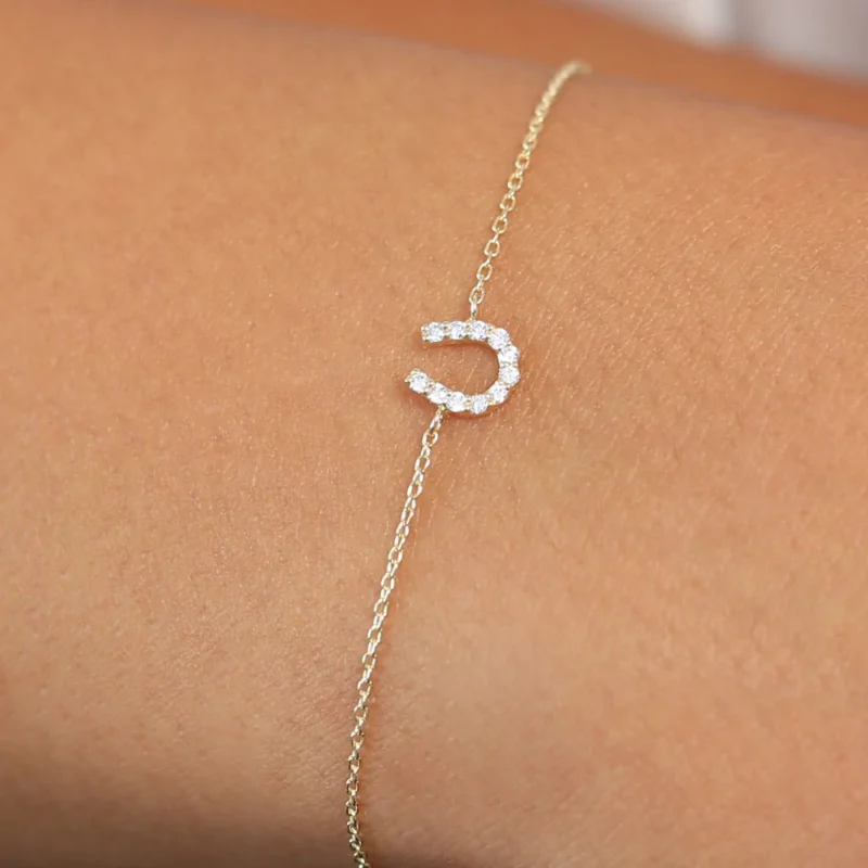 • Delicate chain bracelets with Moissanite-studded hearts, stars, or initials