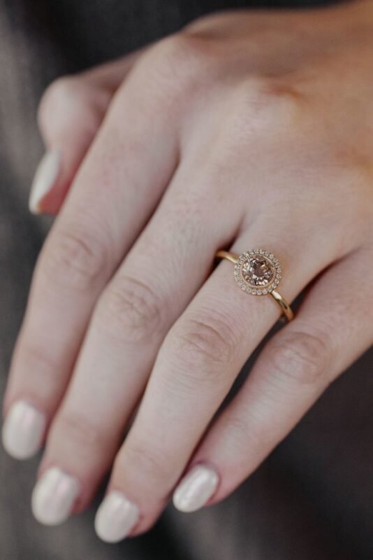 The Alma 1.00 ct Round Champagne Moissanite Diamond Halo Ring