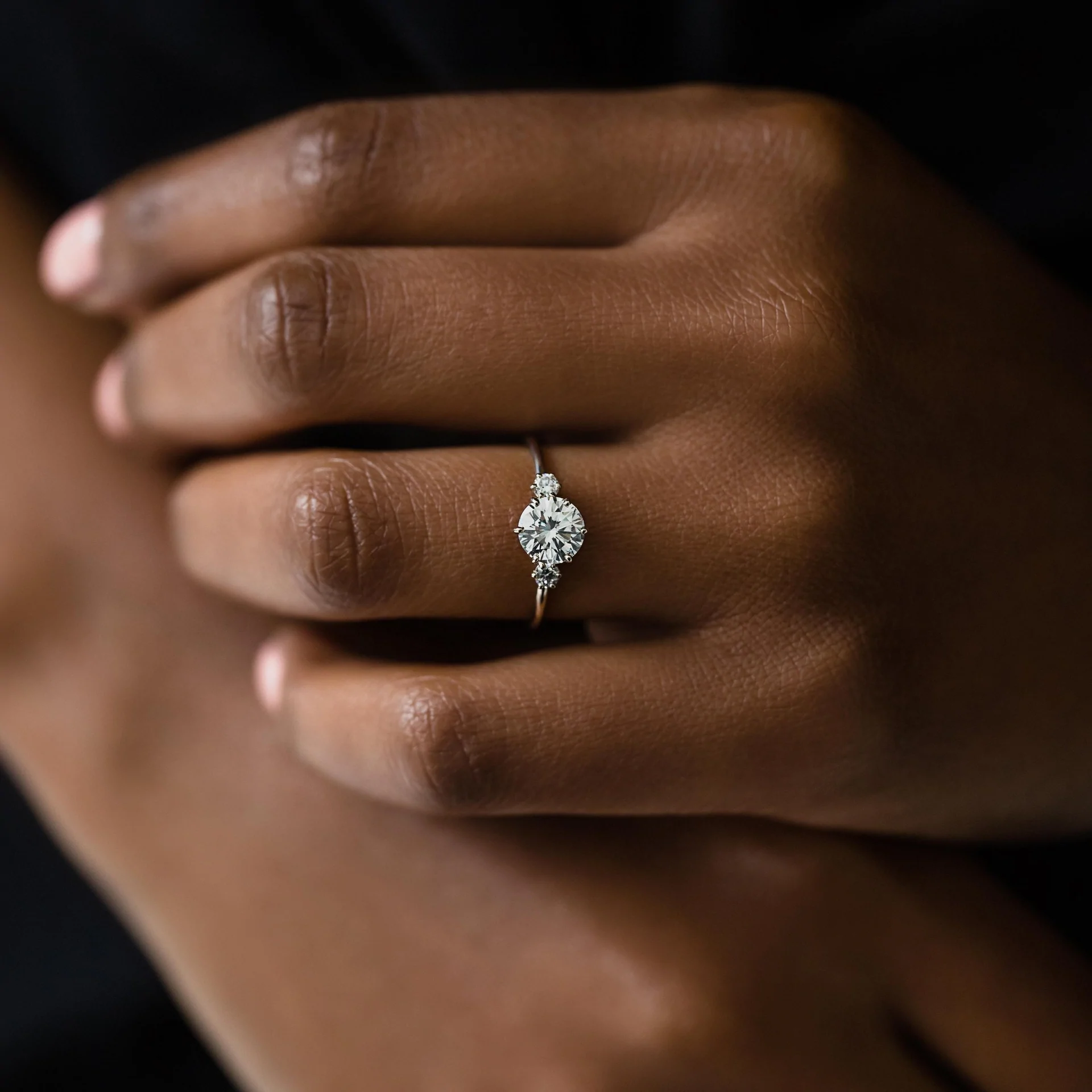 The Touchpoints Ring showcases a round-cut moissanite diamond in a graceful setting, representing the powerful connection between two hearts in love.