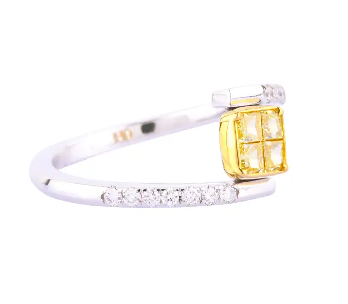 White and Fancy Yellow Moissanite Diamond Cocktail Ring | 18k White Gold Cocktail Ring