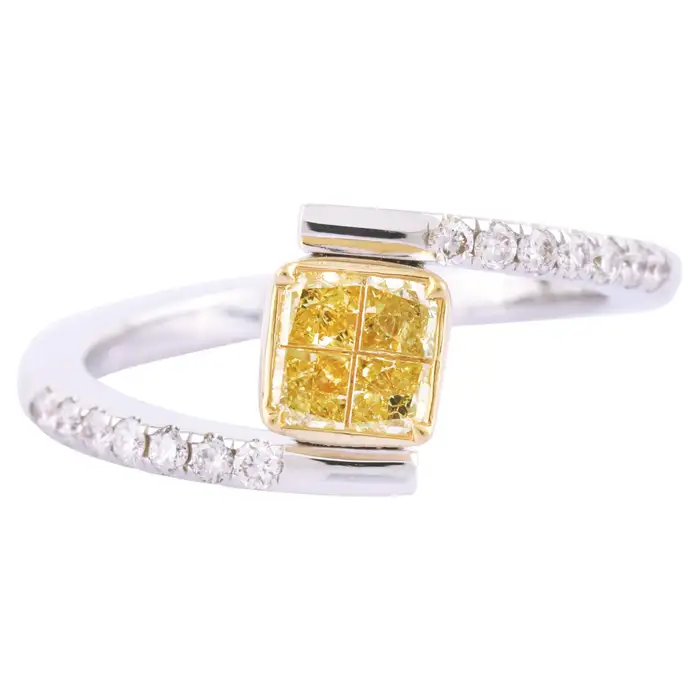 Unique Yellow and White Moissanite Diamond “Illusion-Set” Ring For Women