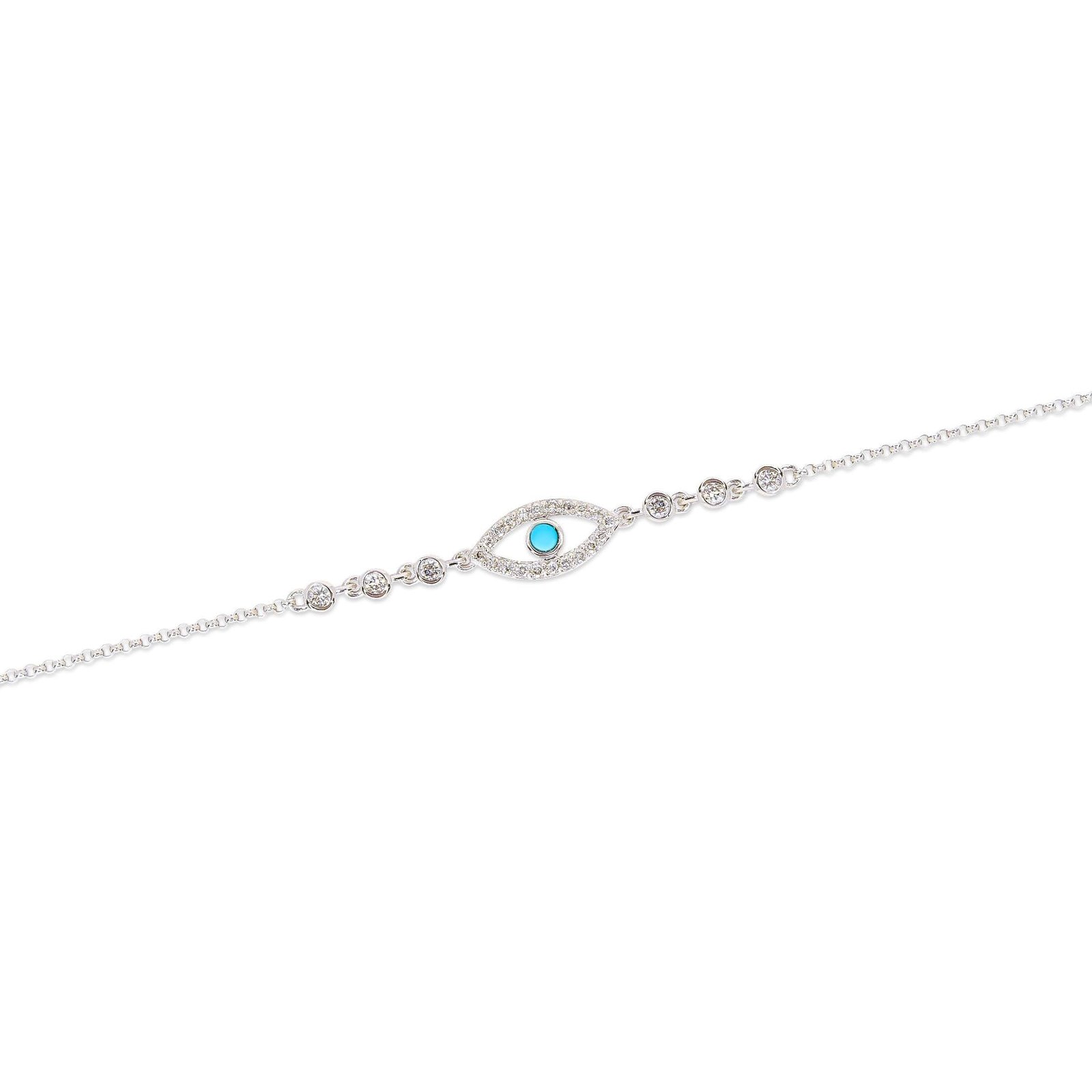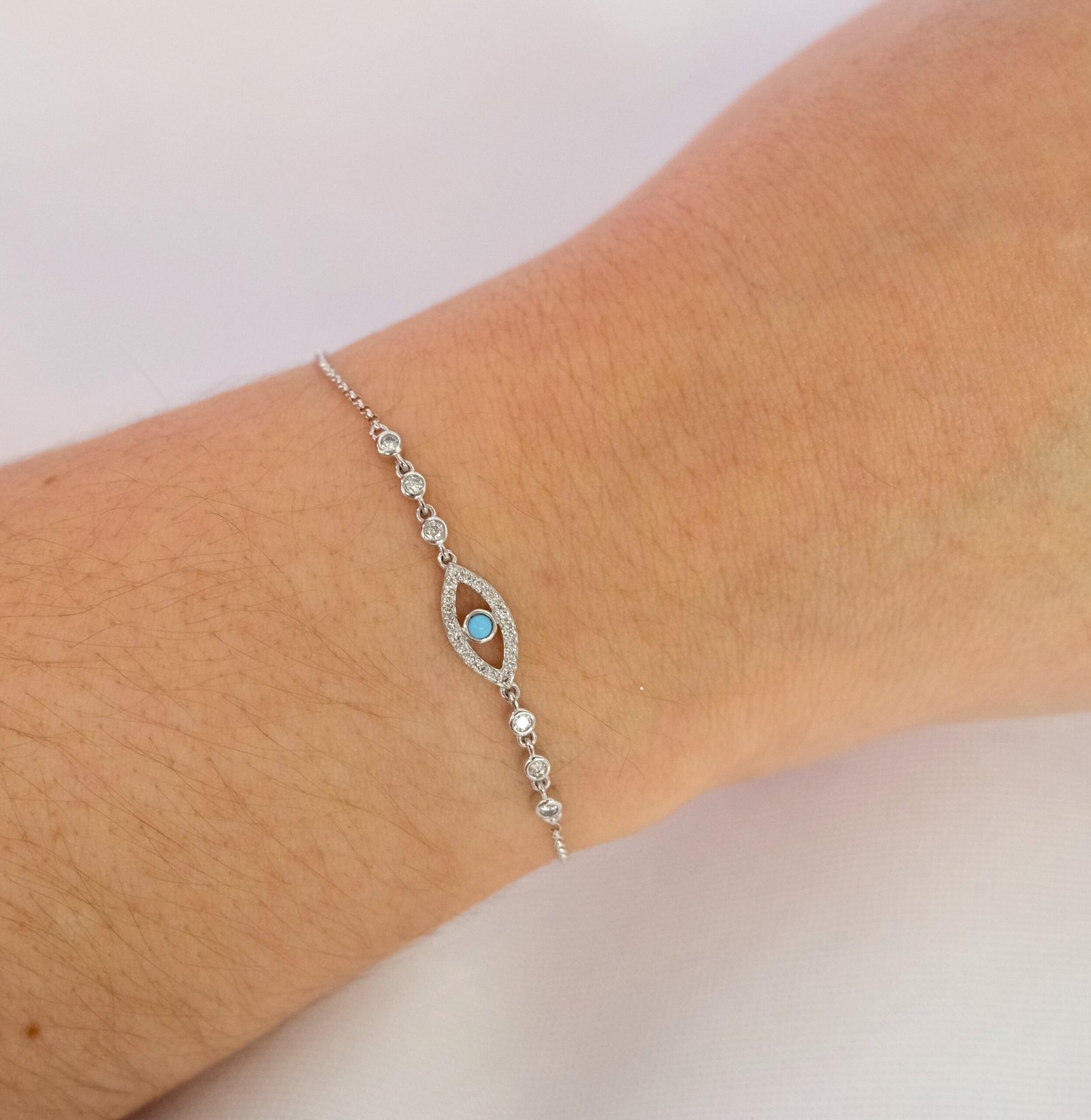 14K Gold Turquoise Evil Eye Moissanite Diamond Bezel Bracelet