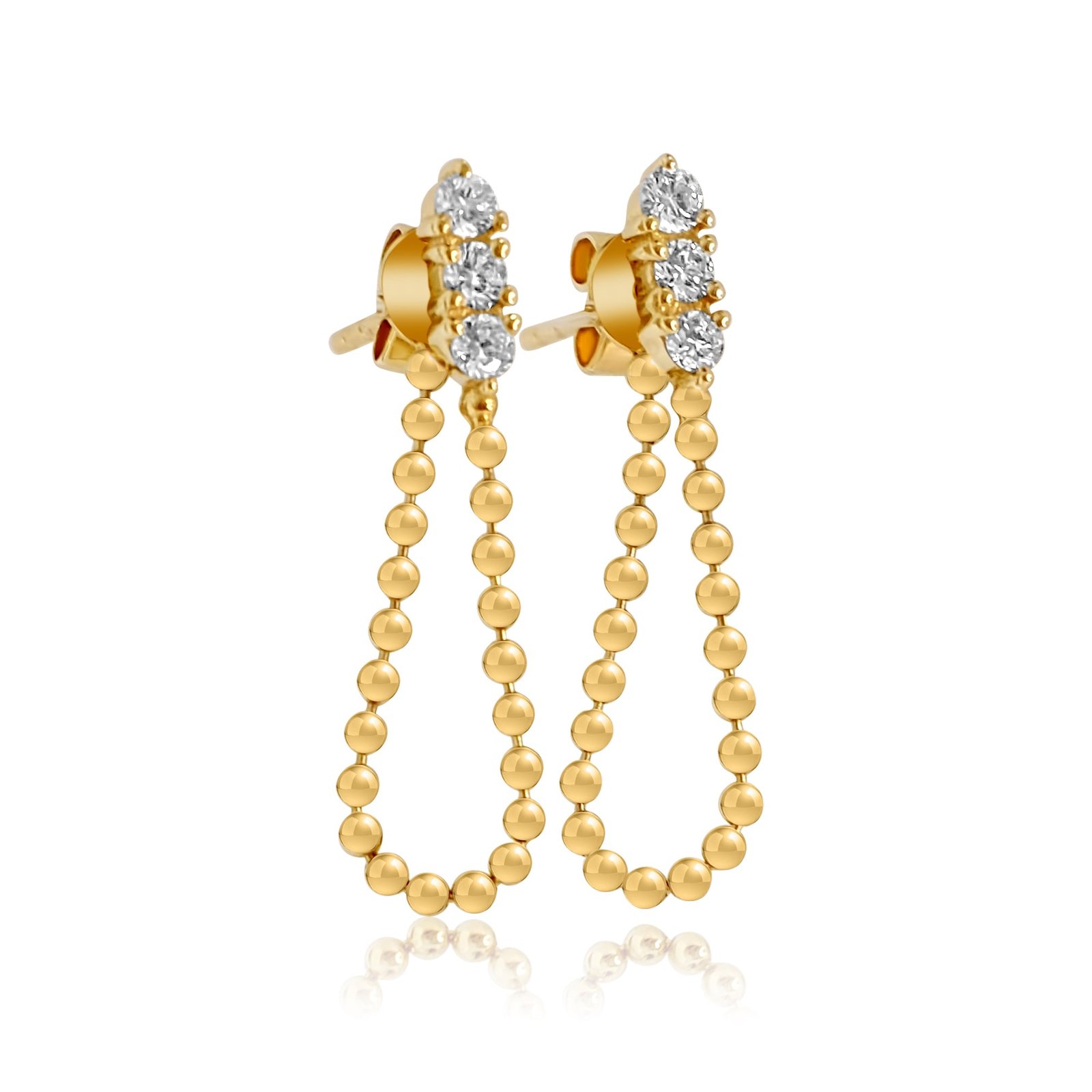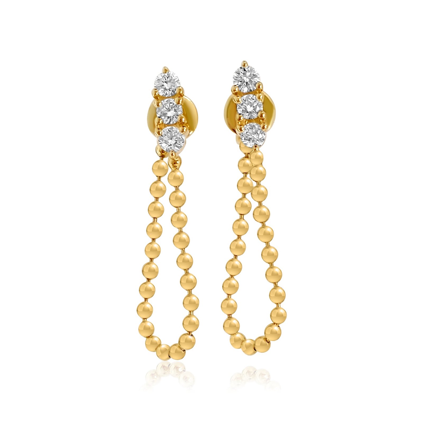 14K Gold Triple Moissanite Diamond Ball Chain Loop Earring