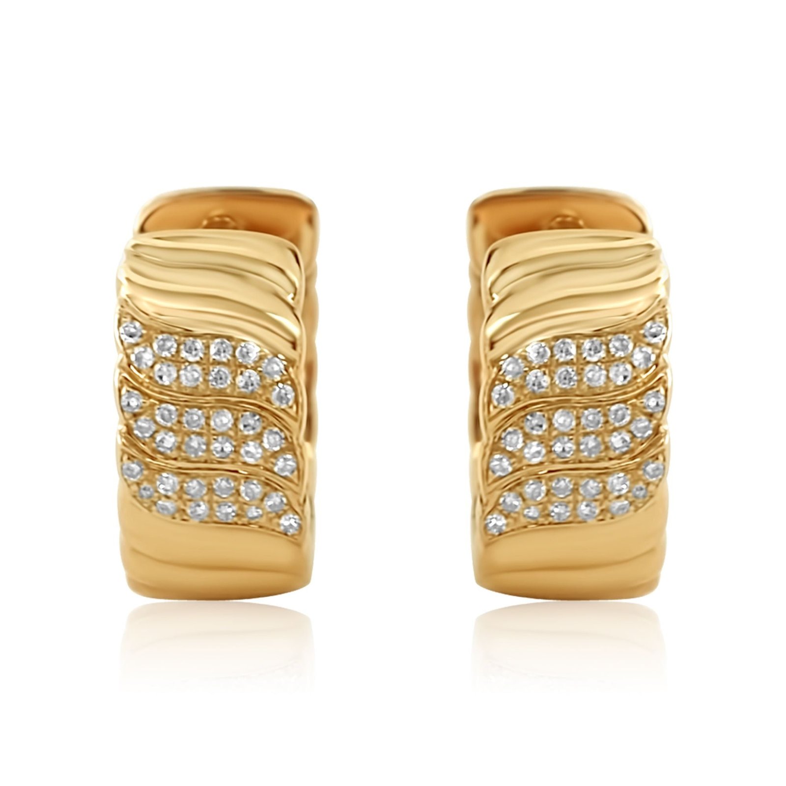 "Elegant 14K Gold Triple Cuban Link Pave Moissanite Diamond Earrings – a unique design with pave Moissanite diamonds for a bold, luxurious look."