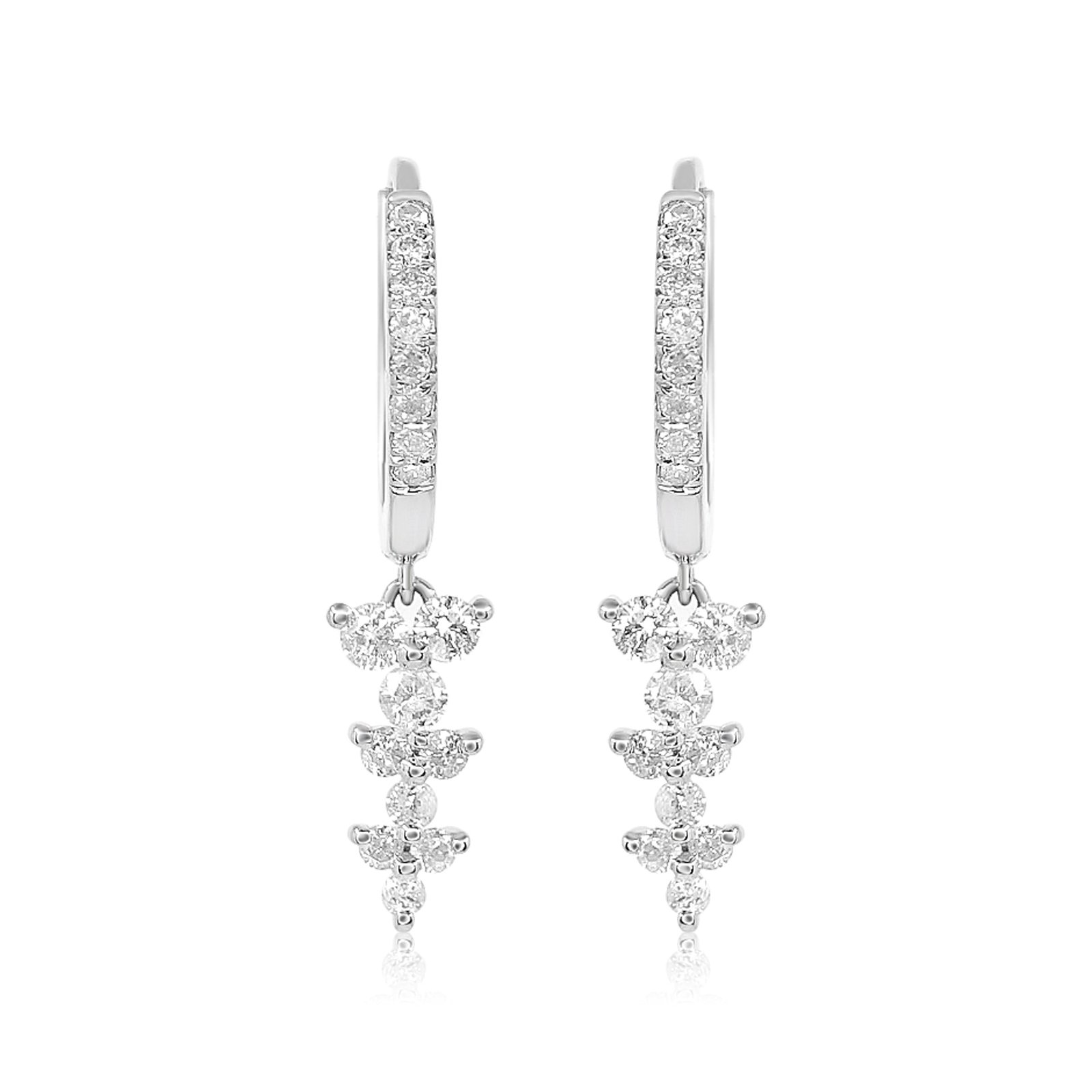 14K Gold Triple Trio Moissanite Diamond Hoop Earring