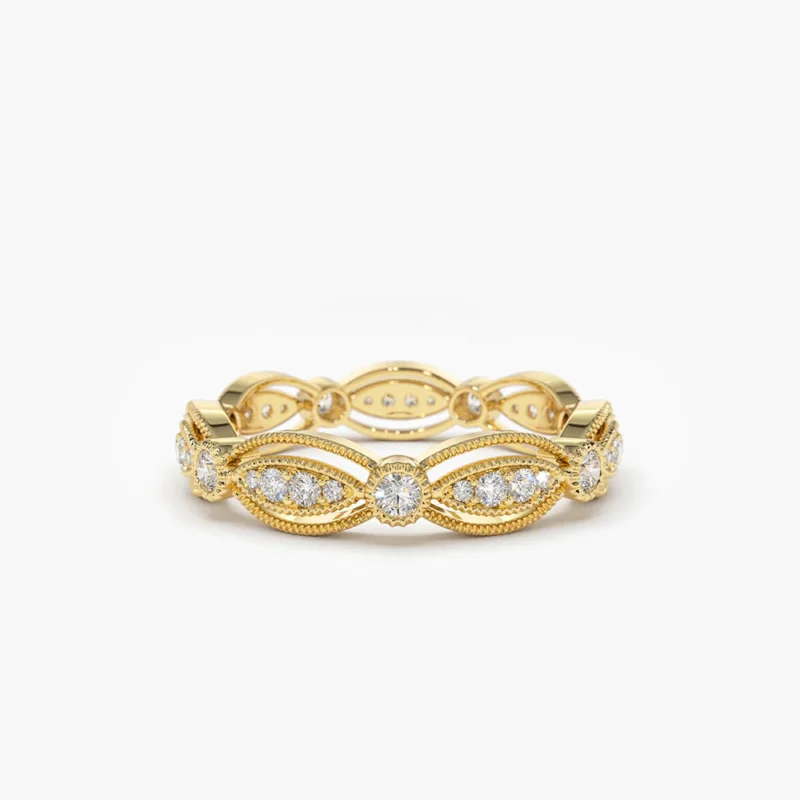 14K Gold Vintage Art Deco Diamond Eternity Wedding Ring
