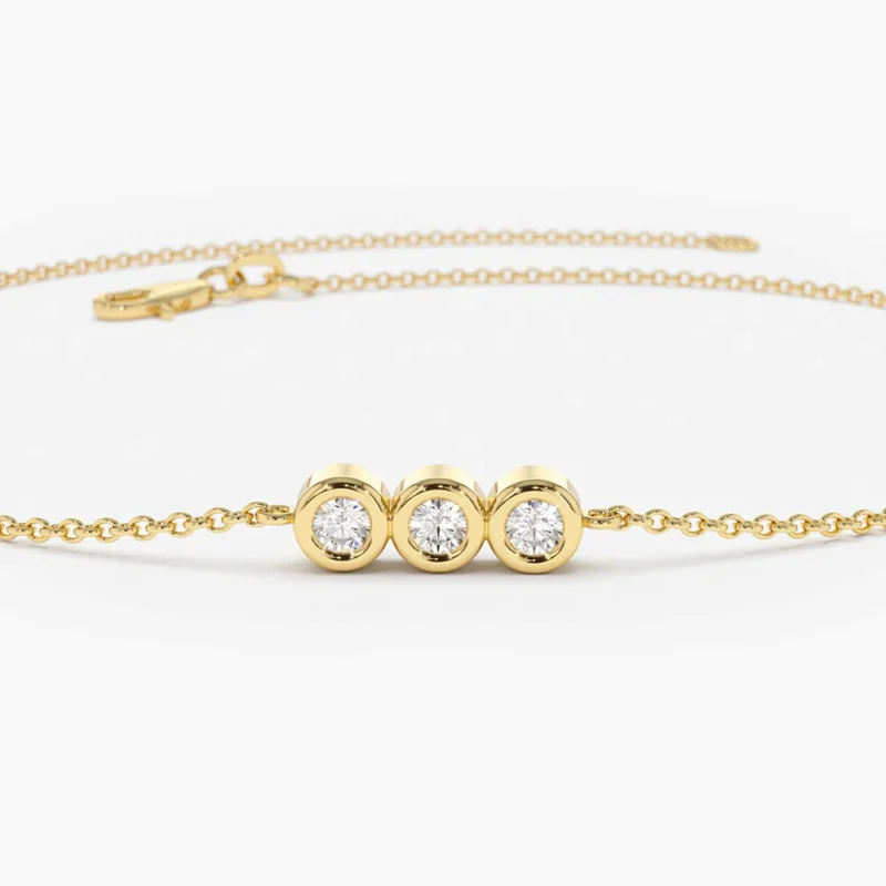 14K Gold Trio Moissanite Diamond Bracelet with Thin Chain