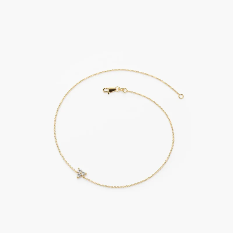 14K Solid Gold Moissanite Diamond Cross Bracelet